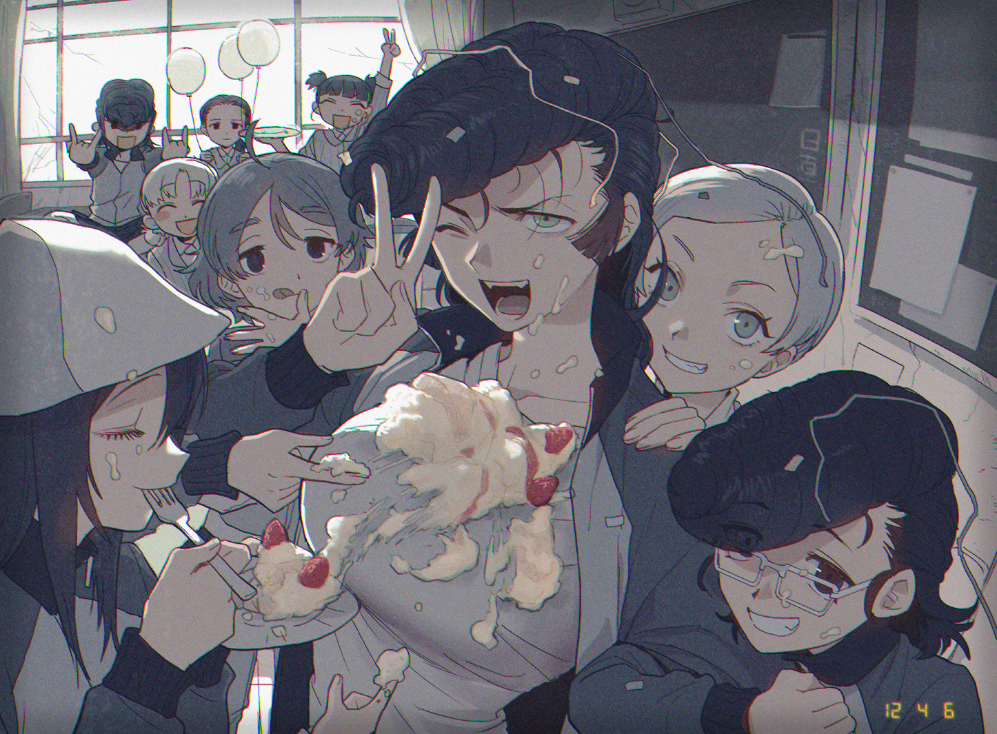6+girls aki_(girls_und_panzer) ari_(girls_und_panzer) birthday birthday_cake black_eyes black_hair blue_eyes breasts brown_hair cake character_request commentary commentary_request dated eating fake_photograph food girls_und_panzer glasses green_eyes hat indoors katsuoboshi keizoku_military_uniform large_breasts long_hair mika_(girls_und_panzer) mikko_(girls_und_panzer) multiple_girls partial_commentary pompadour reino_(girls_und_panzer) short_hair short_twintails tami_(girls_und_panzer) twintails white_hair yuri's_gunner_(girls_und_panzer) yuri's_loader_(girls_und_panzer) yuri_(girls_und_panzer)