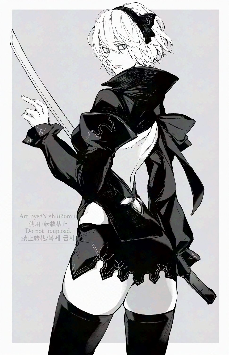 &{ID:12628255 CreatedAt:Sat Sep 13 21:30:11 -0500 2025 Score:3 Width:971 Height:1505 MD5:c9ca4fbd76aaa292c4786f17cd68f379 Directory:c9/ca Image:c9ca4fbd76aaa292c4786f17cd68f379.jpg Rating:general Source:https://twitter.com/n888rkgk/status/1966457934625595793 Change:1757817011 Owner:danbooru CreatorID:6498 ParentID:0 Sample:0 PreviewHeight:350 PreviewWidth:225 Tags:1girl 2b_(nier:automata) backless_outfit black_hairband black_skirt black_thighhighs border breasts cowboy_shot grey_background greyscale hair_between_eyes hairband highres holding holding_sword holding_weapon looking_at_viewer medium_breasts miniskirt mole mole_under_mouth monochrome nier_(series) nier_reincarnation nishiii26miii official_alternate_costume short_hair skindentation skirt solo sword thighhighs weapon white_border white_hair Title: HasNotes:false HasComments:false FileURL:https://img2.gelbooru.com/images/c9/ca/c9ca4fbd76aaa292c4786f17cd68f379.jpg PreviewURL:https://gelbooru.com/thumbnails/c9/ca/thumbnail_c9ca4fbd76aaa292c4786f17cd68f379.jpg SampleURL: SampleHeight:0 SampleWidth:0 Status:active PostLocked:0 HasChildren:false IsVideo:false DisplayDate:13.09.2025 21:30}