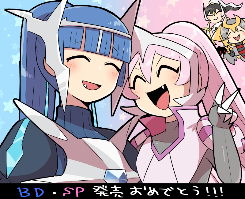 1boy 3girls androgynous arceus armor black_hair blue_hair chibi claws dialga fang gem gen_4_pokemon giratina grey_hair humanization kasugai_(de-tteiu) legendary_pokemon light_blush multiple_girls mythical_pokemon nintendo palkia personification pink_hair pokemon trap turtleneck v