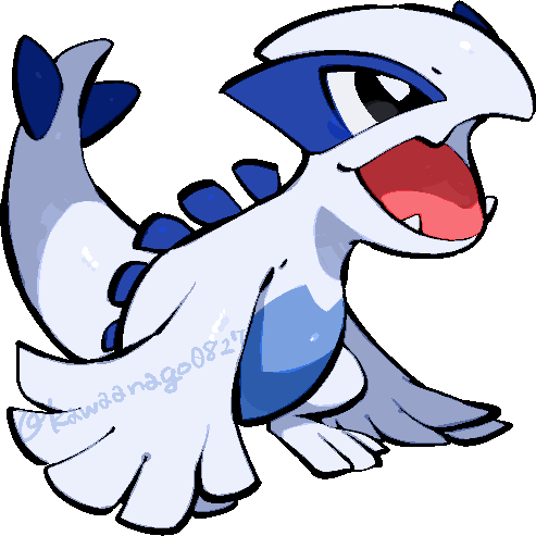 animal_focus black_eyes bright_pupils chibi chibi_only commentary_request fangs full_body gen_2_pokemon kawaanago legendary_pokemon lowres lugia nintendo no_humans open_mouth pokemon pokemon_(creature) pokemon_focus solo transparent_background twitter_username white_pupils