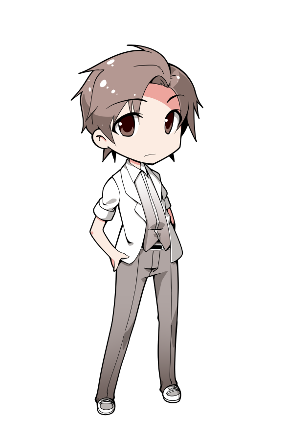 1boy blazer blush brown_hair cevio chibi chibi_only collared_shirt commentary_request converse dairi full_body grey_pants grey_shoes hair_between_eyes hands_on_own_hips jacket large_variant_set male_focus pants shirt shoes short_hair sleeves_rolled_up sneakers solo standing tachi-e takahashi_amato transparent_background variant_set white_jacket white_shirt wing_collar