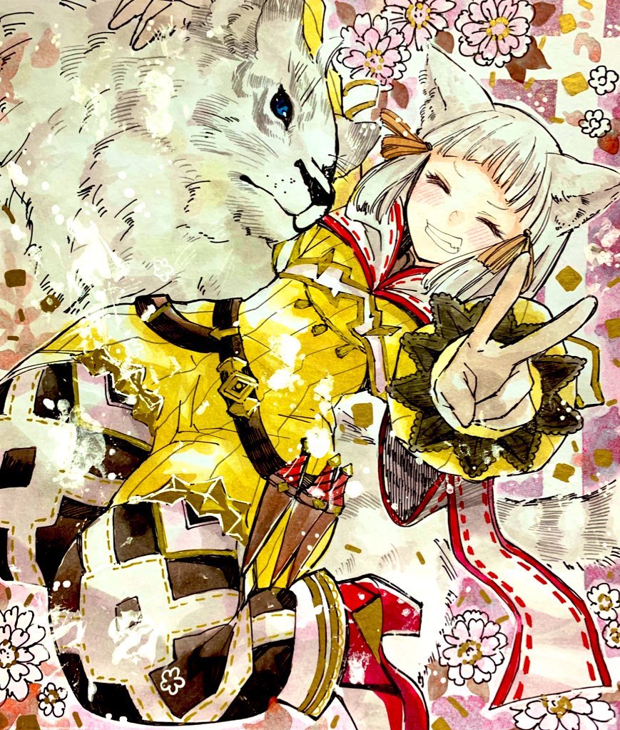 1girl animal_ears cat cat_ears character_request dromarch_(xenoblade) iori_(akaringo) nia_(xenoblade) salute solo tiger two-finger_salute xenoblade_chronicles_(series) xenoblade_chronicles_2