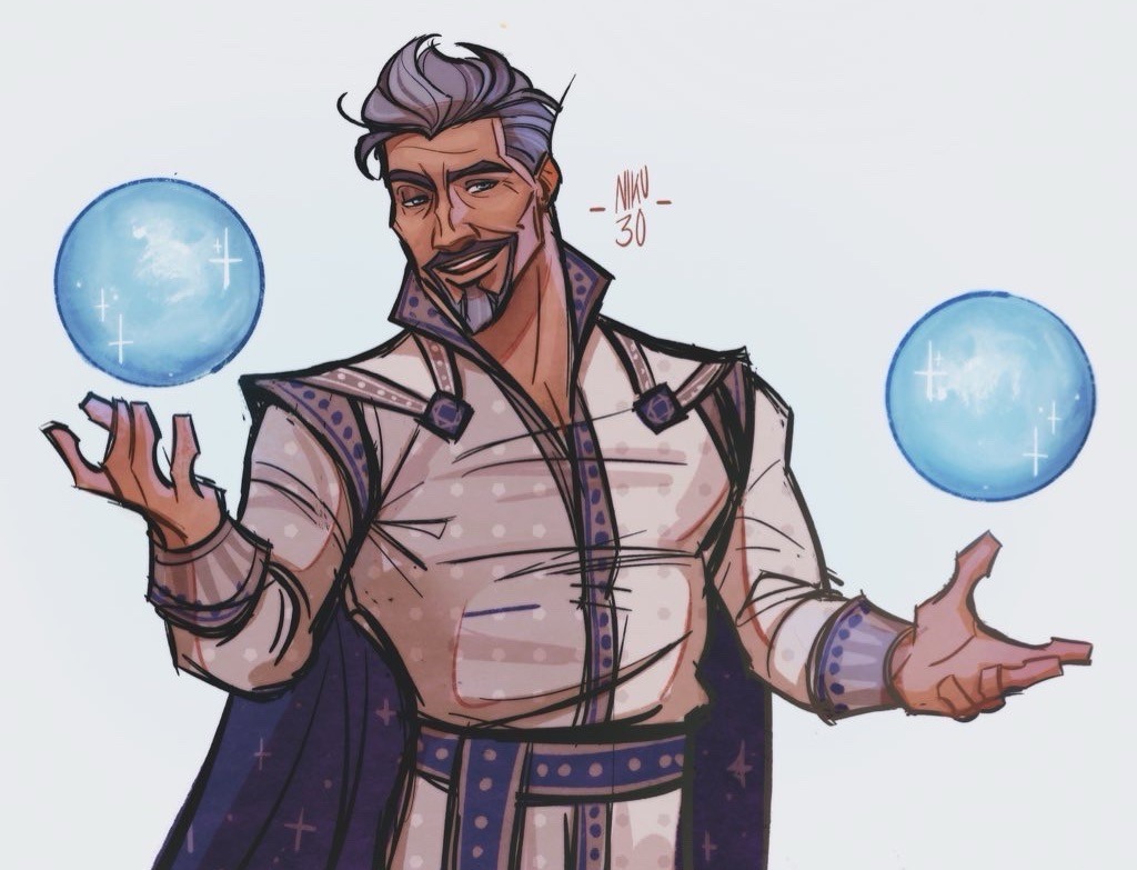 1boy artist_name beard cape cheekbones commentary english_commentary facial_hair grey_hair king_magnifico male_focus mature_male mustache nina_kunze orb short_hair simple_background solo standing white_background wish_(disney)