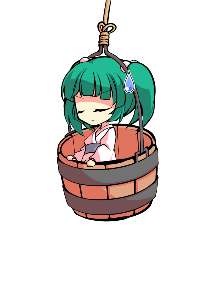 1girl bucket chibi chibi_only closed_eyes commentary_request dairi full_body green_hair in_bucket in_container japanese_clothes kimono kisume large_variant_set medium_hair solo tachi-e touhou transparent_background twintails upper_body variant_set white_kimono wooden_bucket yukata