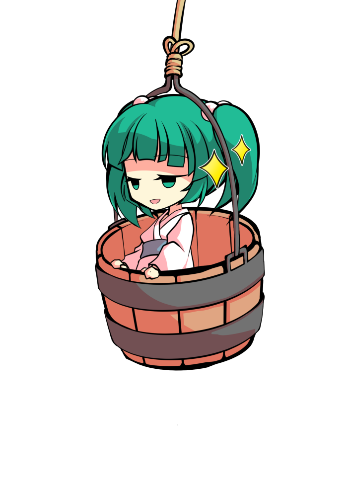 1girl bucket chibi chibi_only commentary_request dairi full_body green_eyes green_hair in_bucket in_container japanese_clothes kimono kisume large_variant_set medium_hair solo tachi-e touhou transparent_background twintails upper_body variant_set white_kimono wooden_bucket yukata