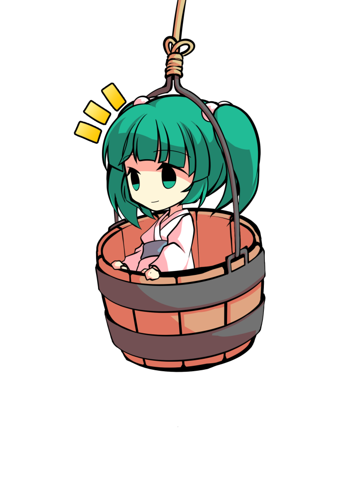 1girl bucket chibi chibi_only commentary_request dairi full_body green_eyes green_hair in_bucket in_container japanese_clothes kimono kisume large_variant_set medium_hair solo tachi-e touhou transparent_background twintails upper_body variant_set white_kimono wooden_bucket yukata