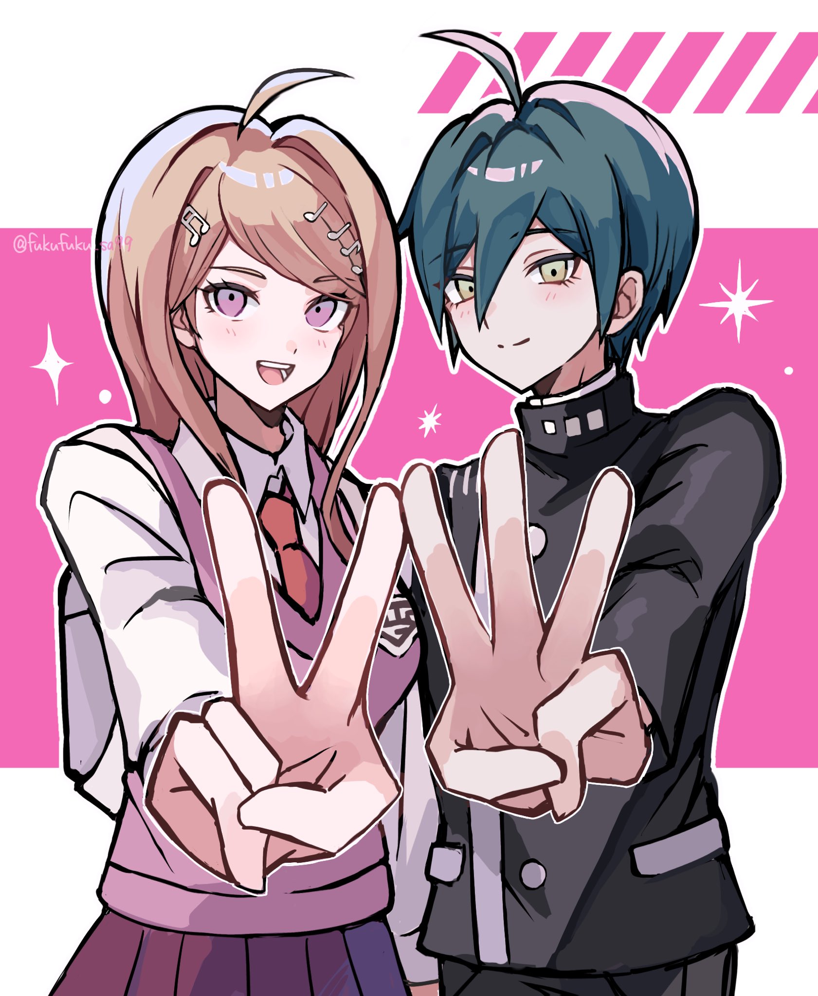 &{ID:12661076 CreatedAt:Fri Sep 19 15:00:49 -0500 2025 Score:3 Width:1681 Height:2048 MD5:c6fed6a1928c685812b8d6219ef27319 Directory:c6/fe Image:c6fed6a1928c685812b8d6219ef27319.jpg Rating:general Source:https://twitter.com/fukufuku_sa99/status/1918339223259889827 Change:1758312050 Owner:danbooru CreatorID:6498 ParentID:0 Sample:1 PreviewHeight:350 PreviewWidth:287 Tags:1boy 1girl ahoge akamatsu_kaede black_hair blonde_hair blush breasts brown_eyes buttons collared_jacket collared_shirt commentary cowboy_shot crest danganronpa_(series) danganronpa_v3:_killing_harmony eyelashes foreshortening fortissimo fuku_sa hair_between_eyes hair_ornament highres jacket long_hair long_sleeves looking_at_viewer musical_note musical_note_hair_ornament necktie open_mouth outline pants pink_background pink_eyes pink_sweater_vest pink_vest pleated_skirt saihara_shuichi shirt short_hair skirt smile sparkle sweater_vest twitter_username v vest white_bag white_shirt Title: HasNotes:false HasComments:false FileURL:https://img2.gelbooru.com/images/c6/fe/c6fed6a1928c685812b8d6219ef27319.jpg PreviewURL:https://gelbooru.com/thumbnails/c6/fe/thumbnail_c6fed6a1928c685812b8d6219ef27319.jpg SampleURL:https://img2.gelbooru.com/samples/c6/fe/sample_c6fed6a1928c685812b8d6219ef27319.jpg SampleHeight:1036 SampleWidth:850 Status:active PostLocked:0 HasChildren:false IsVideo:false DisplayDate:19.09.2025 15:00}