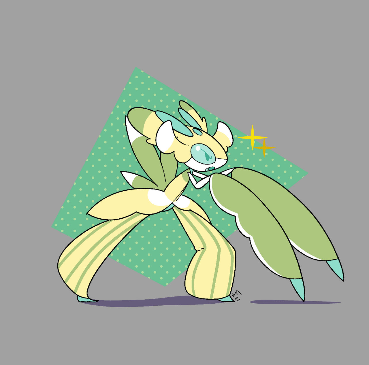 alternate_color from_side full_body gen_7_pokemon grey_background highres idek-draws lurantis nintendo open_mouth pokemon pokemon_(creature) pokemon_focus shiny_pokemon simple_background