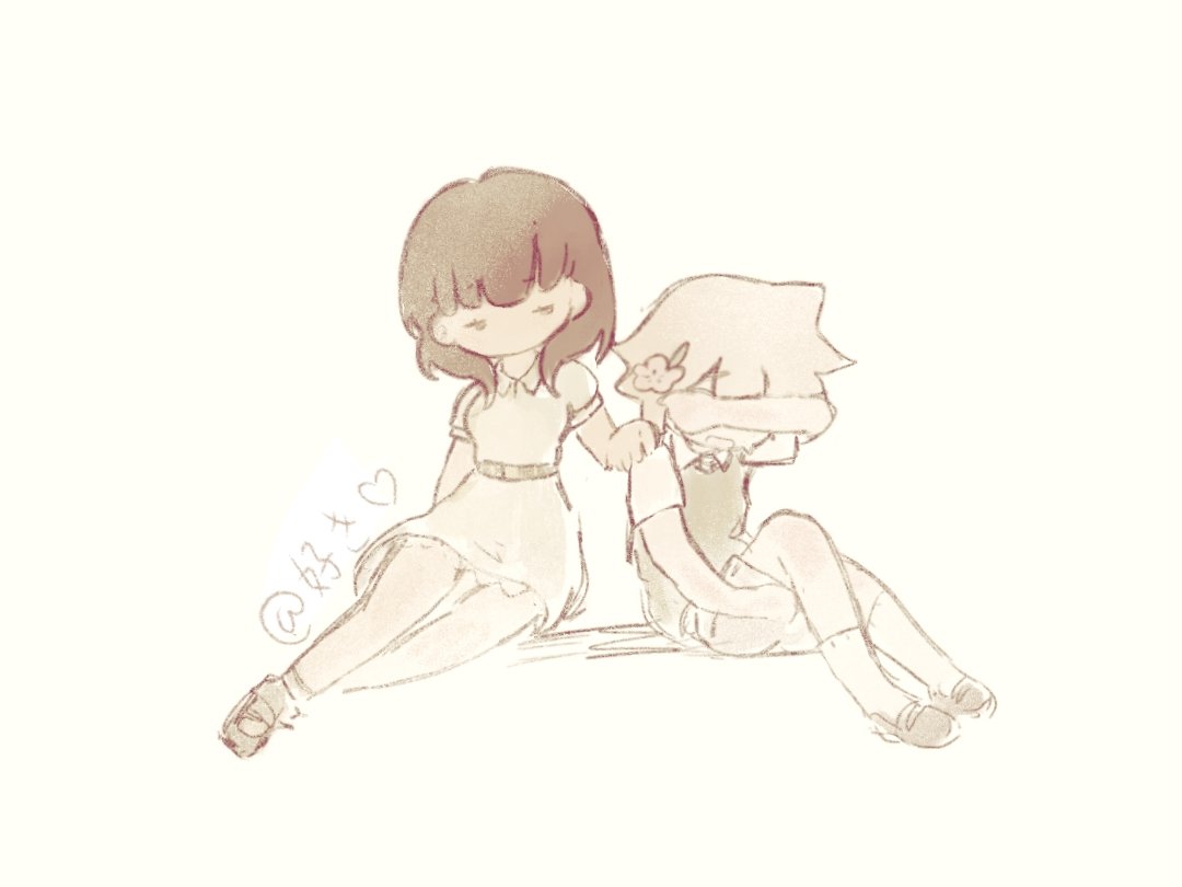1boy 1girl artist_request basil_(faraway)_(omori) basil_(omori) belt blonde_hair brown_hair crying dress flower hair_flower hair_ornament omori polly_(omori) shoes shorts socks white_socks