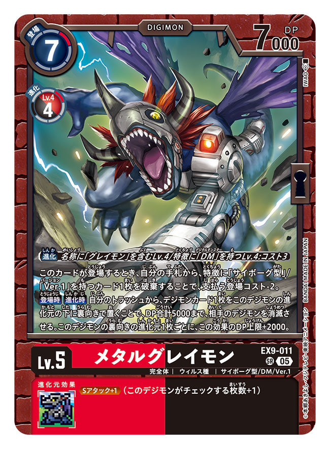 akira-enter1 artist_name blonde_hair card_(medium) character_name commentary_request copyright_name cyborg digimon digimon_(creature) digimon_card_game dinosaur mechanical_arms metalgreymon_(virus) official_art open_mouth red_hair sharp_teeth single_mechanical_arm teeth torn_wings trading_card translation_request wings