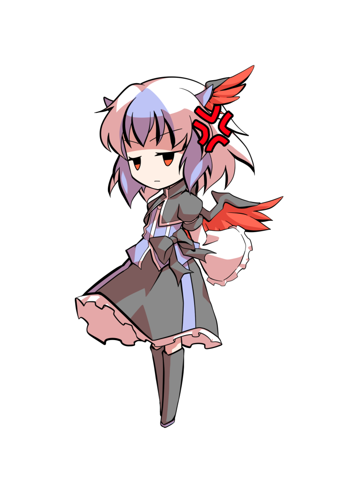 1girl black_boots black_skirt blue_hair boots chibi chibi_only commentary_request dairi feathered_wings frilled_skirt frilled_sleeves frills full_body head_wings horns large_variant_set long_sleeves multicolored_hair red_wings short_hair single_head_wing skirt solo tachi-e tokiko_(touhou) touhou transparent_background two-tone_hair variant_set white_hair wide_sleeves wings