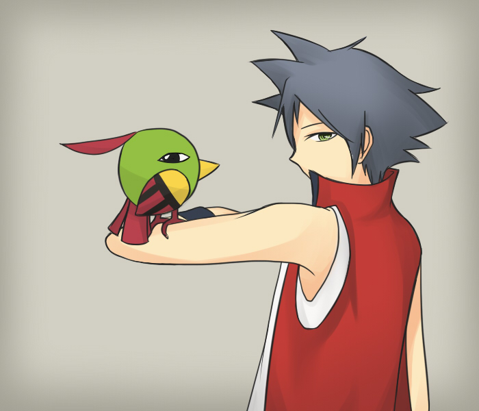 1boy bird_keeper_(pokemon) black_hair gen_2_pokemon jacket natu nintendo pokemon pokemon_ruby/sapphire/emerald red_jacket