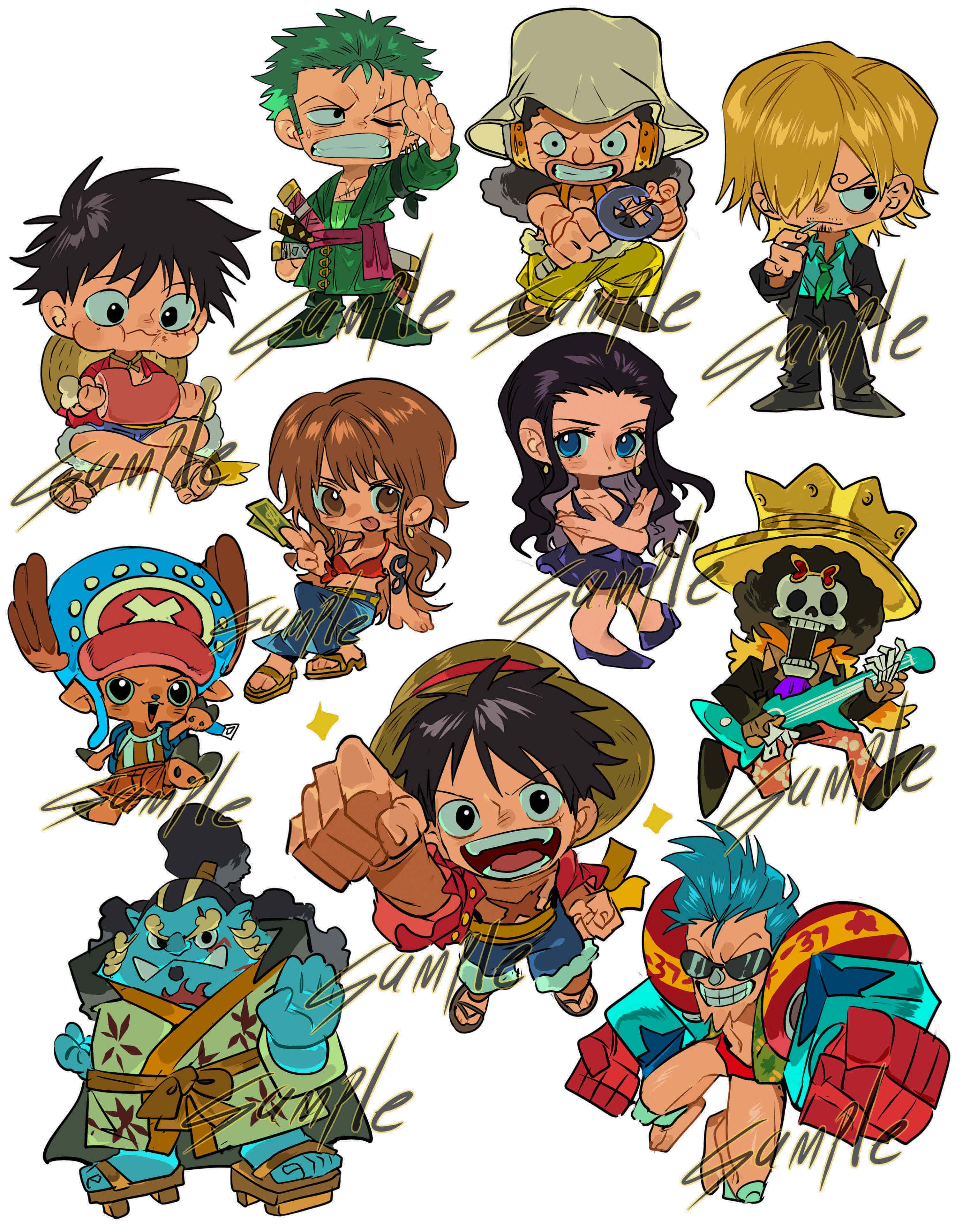 2025 2girls 6+boys absurdres antlers arm_tattoo arm_up bandana_around_arm banknote black_hair black_suit blonde_hair blue_eyes blue_hair blue_shorts brook_(one_piece) chibi cross crown cyborg food formal_clothes franky_(one_piece) green_hair green_kimono guitar haramaki hat highres holding holding_food holding_guitar holding_instrument holding_money horns indian_style instrument japanese_clothes jinbe_(one_piece) kimono long_hair long_nose money monkey_d._luffy multiple_boys multiple_girls nami_(one_piece) nico_robin nico_robin_(dressrosa) official_alternate_costume one_piece orange_hair pompadour ponytail red_shirt reindeer_antlers roronoa_zoro sample_watermark sanji_(one_piece) sash scar scar_across_eye scar_on_chest scar_on_face shirt short_hair shorts simple_background sitting skeleton straw_hat straw_hat_pirates suit sunglasses tattoo tony_tony_chopper usopp watermark white_background xi_luo_an_ya yellow_sash