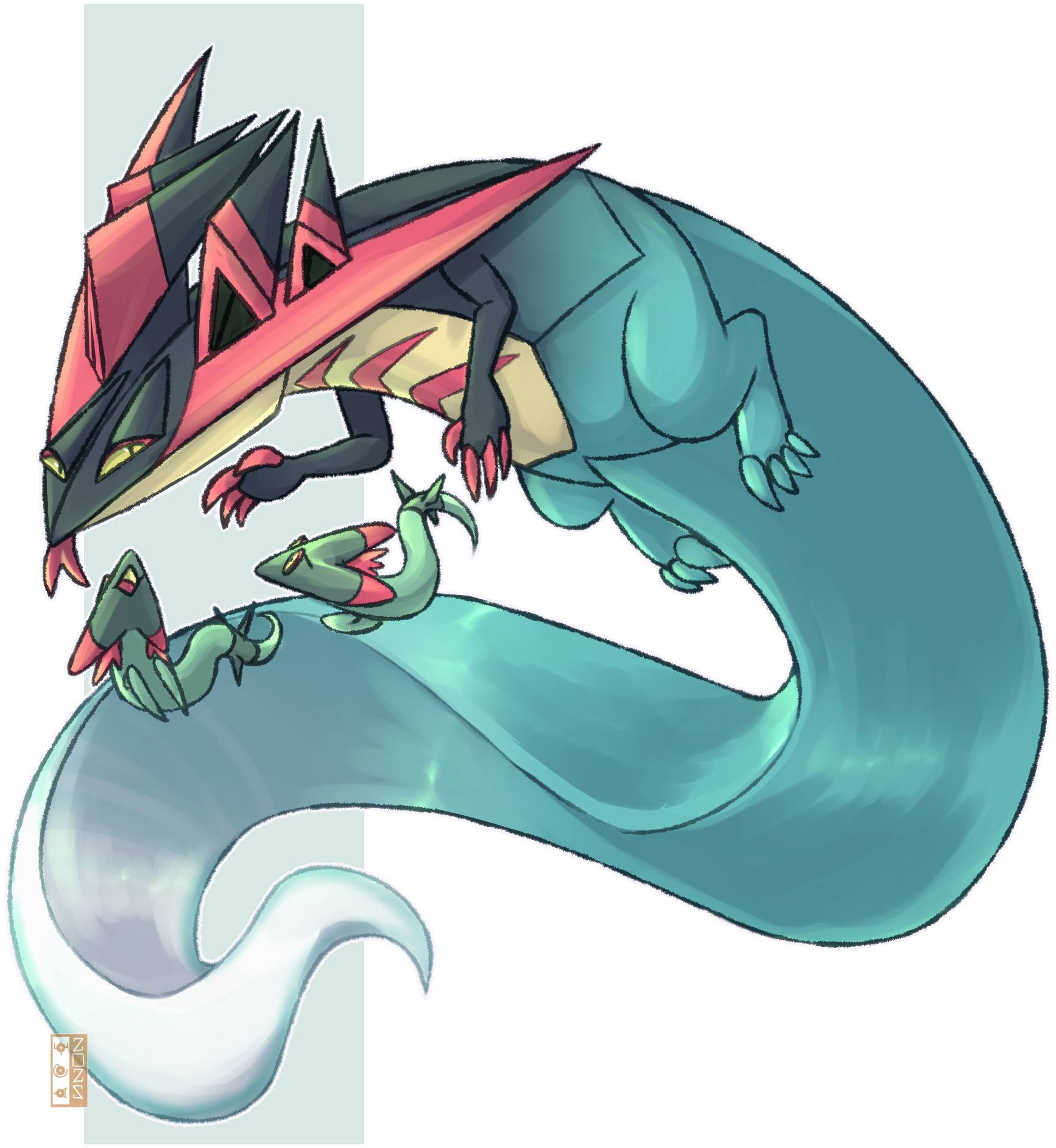 artist_logo dragapult dreepy dualcosmog gen_8_pokemon highres logo nintendo no_humans outline pokemon pokemon_(creature) watermark white_outline