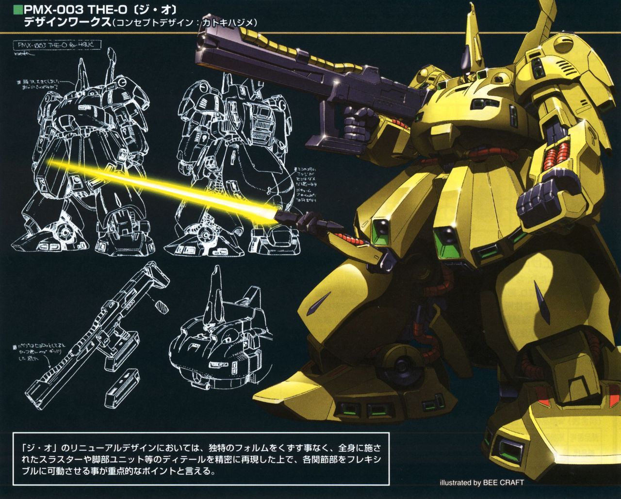 1980s_(style) 1990s_(style) akutsu_jun'ichi beam_rifle cable energy_gun energy_sword extra_arms gundam lineart machinery mecha mecha_focus mixed-language_text mobile_suit multiple_views no_humans oldschool one-eyed retro_artstyle robot science_fiction sword the_o_(mobile_suit) titans_(gundam) translation_request weapon zeta_gundam