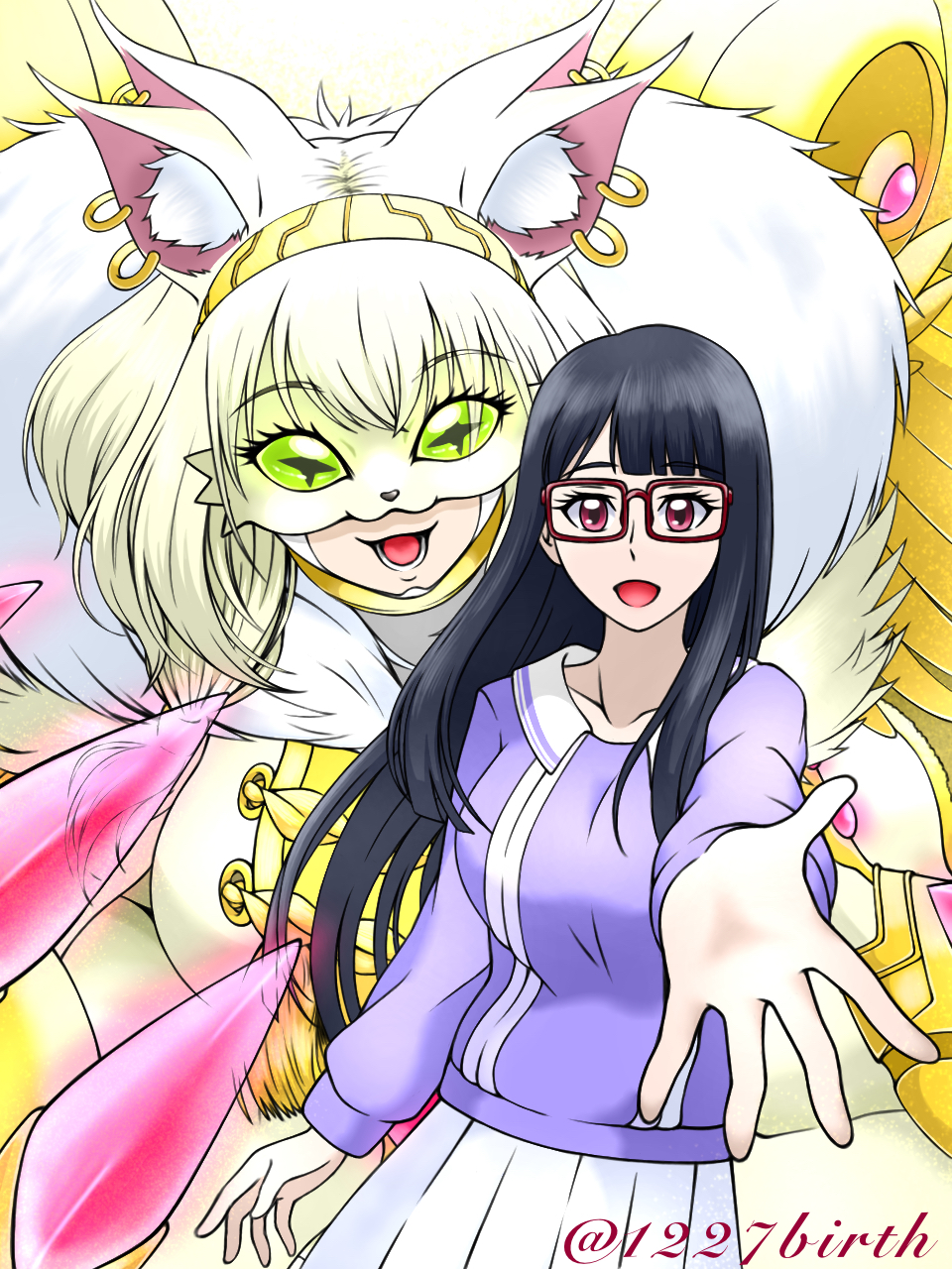 1227birth 2girls armor breasts digimon digimon_(creature) green_eyes highres long_hair mask mochizuki_meiko multiple_girls open_mouth smile