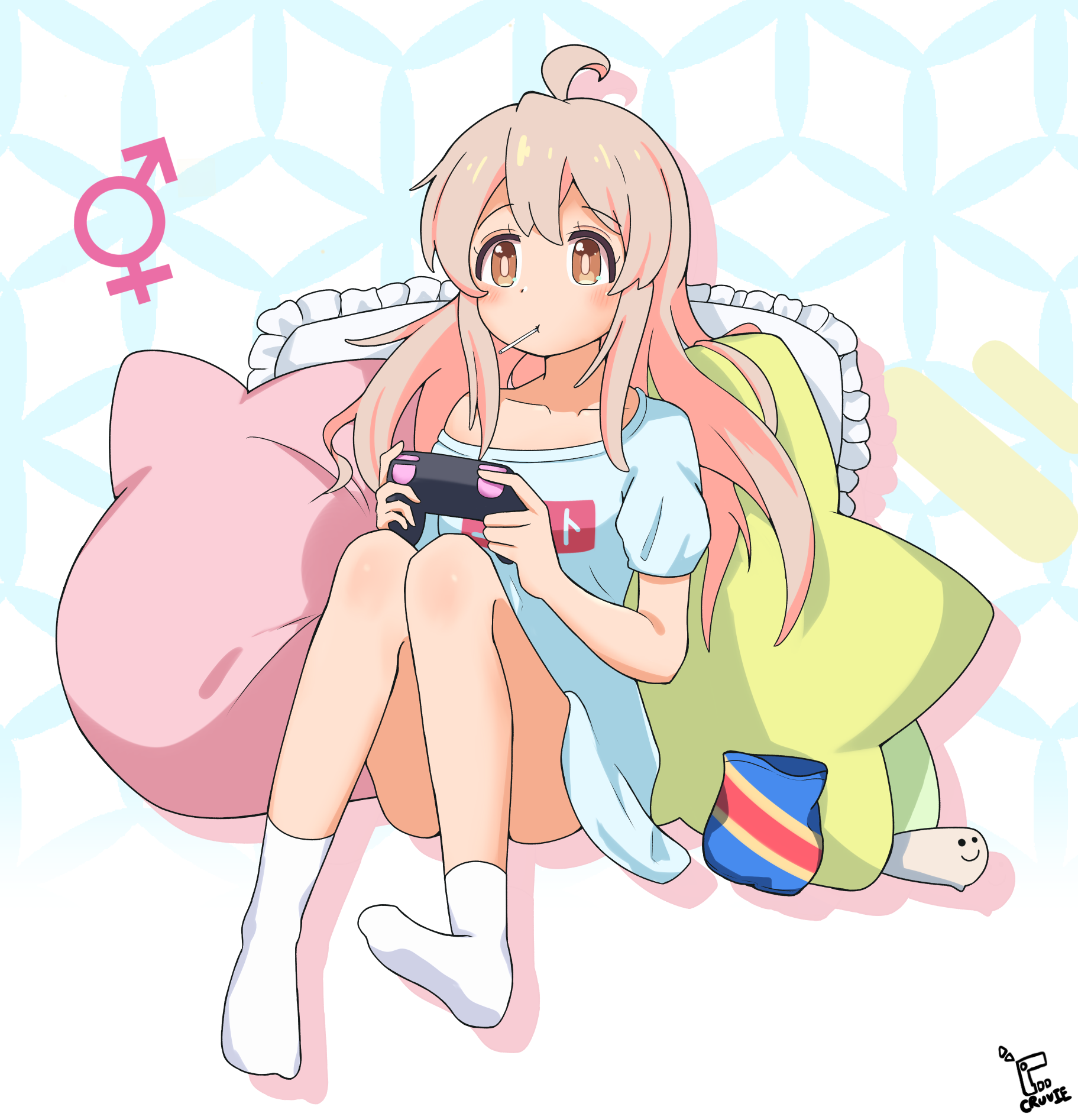 &{ID:12733381 CreatedAt:Thu Oct 02 20:16:39 -0500 2025 Score:5 Width:1823 Height:1894 MD5:ad91320ca7b5938c3f368dc5cf999d1e Directory:ad/91 Image:ad91320ca7b5938c3f368dc5cf999d1e.png Rating:general Source:https://www.pixiv.net/artworks/129956574 Change:1774813197 Owner:danbooru CreatorID:6498 ParentID:0 Sample:1 PreviewHeight:350 PreviewWidth:336 Tags:1girl ahoge blue_shirt blush brown_eyes brown_hair brown_pupils collarbone commentary controller convenient_leg cruvie double-parted_bangs drop_shadow eyelashes food_in_mouth frilled_pillow frills full_body game_controller hair_between_eyes highres holding holding_controller holding_game_controller knees_together_feet_apart knees_up lollipop_in_mouth long_hair looking_ahead mars_symbol onii-chan_wa_oshimai! oyama_mahiro pillow shirt short_sleeves sidelocks simple_background single_bare_shoulder sitting socks solo star-shaped_pillow t-shirt tareme venus_symbol white_background white_socks Title: HasNotes:false HasComments:true FileURL:https://img2.gelbooru.com/images/ad/91/ad91320ca7b5938c3f368dc5cf999d1e.png PreviewURL:https://gelbooru.com/thumbnails/ad/91/thumbnail_ad91320ca7b5938c3f368dc5cf999d1e.jpg SampleURL:https://img2.gelbooru.com/samples/ad/91/sample_ad91320ca7b5938c3f368dc5cf999d1e.jpg SampleHeight:883 SampleWidth:850 Status:active PostLocked:0 HasChildren:false IsVideo:false DisplayDate:02.10.2025 20:16}
