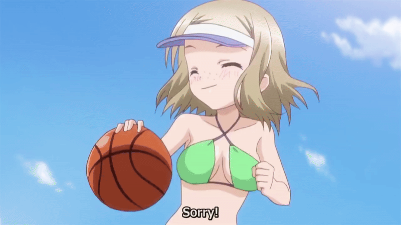 3girls animated animated_gif artist_request ball baseball_cap basketball basketball_(object) bikini breasts character_request copyright_request dribbling_(basketball) female_focus hat multiple_girls playing_sports purple_eyes purple_hair swimsuit underboob