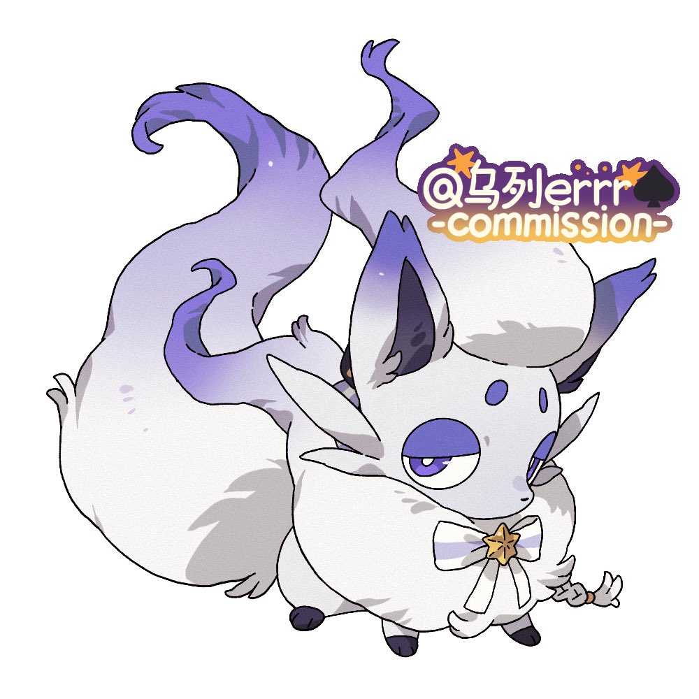 alternate_color alternate_shiny_pokemon animal_focus animal_hands bow bowtie bright_pupils fluffy fox full_body hisuian_zorua looking_at_viewer neck_fur nintendo no_humans pokemon pokemon_(creature) purple_eyes purple_fur simple_background solo standing white_background white_bow white_bowtie white_fur white_pupils wulie_errr