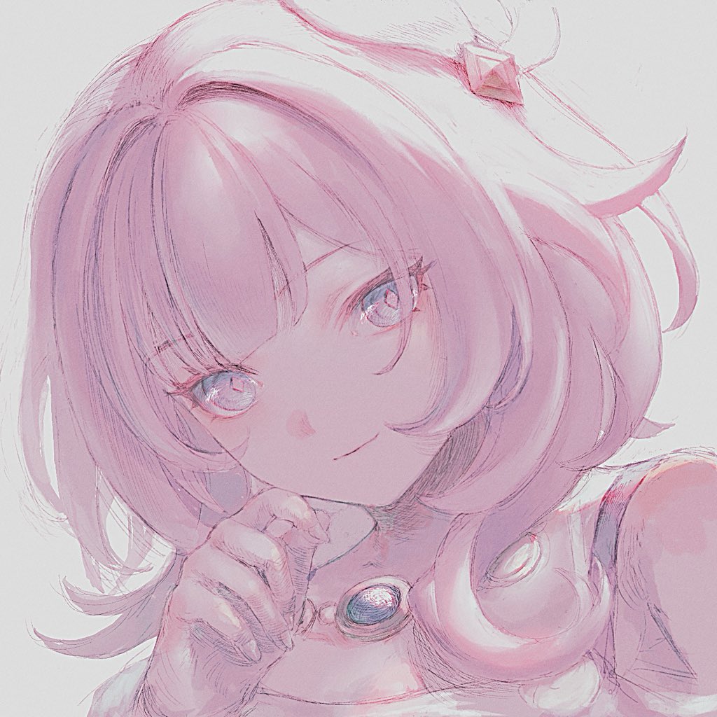 1girl blue_eyes closed_mouth cyrene_(philia093)_(honkai:_star_rail) cyrene_(honkai:_star_rail) hair_intakes hashtag-only_commentary head_tilt honkai:_star_rail honkai_(series) jewelry light_smile looking_at_viewer medium_hair miton_(vvse5752) necklace pink_hair pink_pupils portrait sidelocks solo