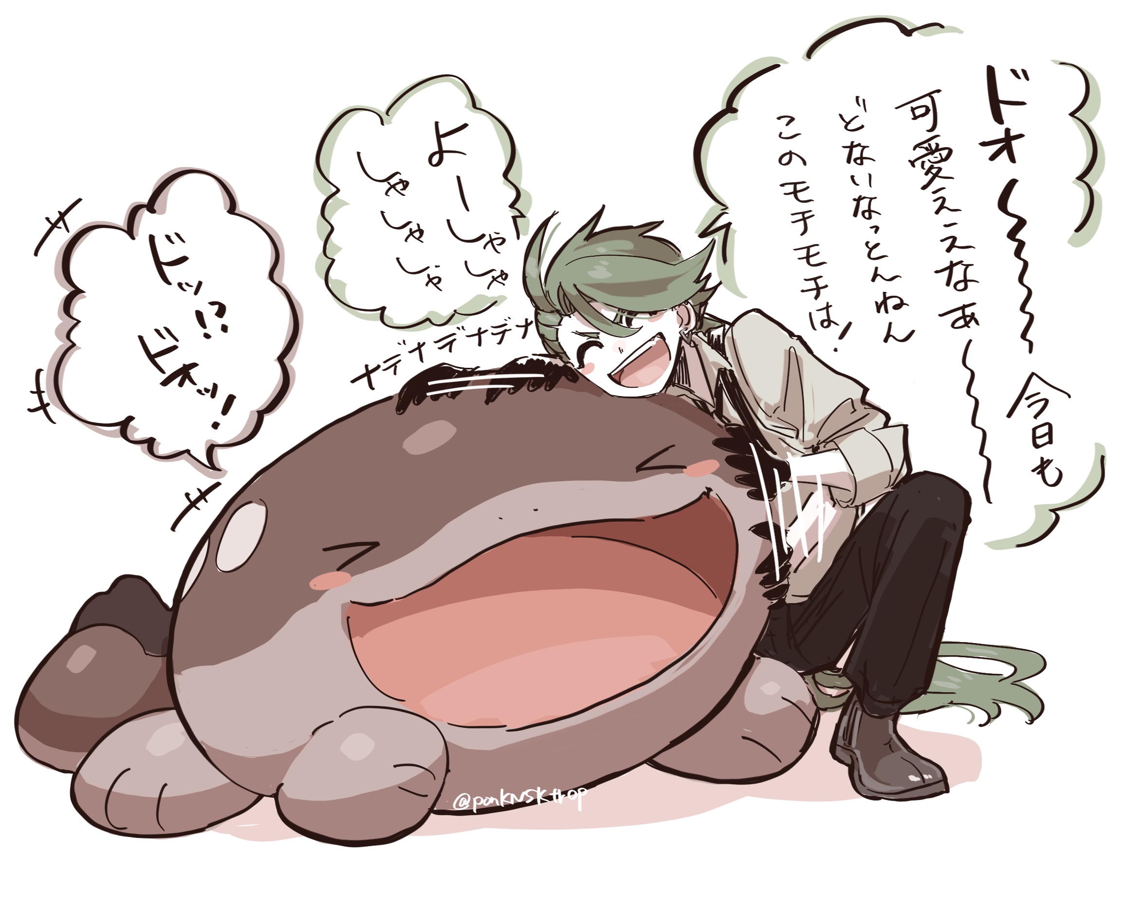 &{ID:12773878 CreatedAt:Fri Oct 10 14:15:24 -0500 2025 Score:0 Width:2314 Height:1868 MD5:fd7f6b6c6f3e9a343e796638bb8ba5a7 Directory:fd/7f Image:fd7f6b6c6f3e9a343e796638bb8ba5a7.jpg Rating:general Source:https://www.pixiv.net/artworks/104007112 Change:1760123725 Owner:danbooru CreatorID:6498 ParentID:0 Sample:1 PreviewHeight:282 PreviewWidth:350 Tags:>_< 1girl ^_^ afterimage black_gloves black_pants blush blush_stickers brown_shoes clodsire closed_eyes commentary_request eyelashes gloves green_hair grey_shirt highres long_hair long_sleeves motion_lines nintendo nostrils open_mouth pants petting pokemon pokemon_(creature) pokemon_scarlet_and_violet pon_(ponymmtknsk) rika_(pokemon) shirt shoes simple_background smile speech_bubble squatting teeth translation_request upper_teeth_only v-shaped_eyebrows very_long_hair white_background Title: HasNotes:false HasComments:false FileURL:https://img2.gelbooru.com/images/fd/7f/fd7f6b6c6f3e9a343e796638bb8ba5a7.jpg PreviewURL:https://gelbooru.com/thumbnails/fd/7f/thumbnail_fd7f6b6c6f3e9a343e796638bb8ba5a7.jpg SampleURL:https://img2.gelbooru.com/samples/fd/7f/sample_fd7f6b6c6f3e9a343e796638bb8ba5a7.jpg SampleHeight:686 SampleWidth:850 Status:active PostLocked:0 HasChildren:false IsVideo:false DisplayDate:10.10.2025 14:15}