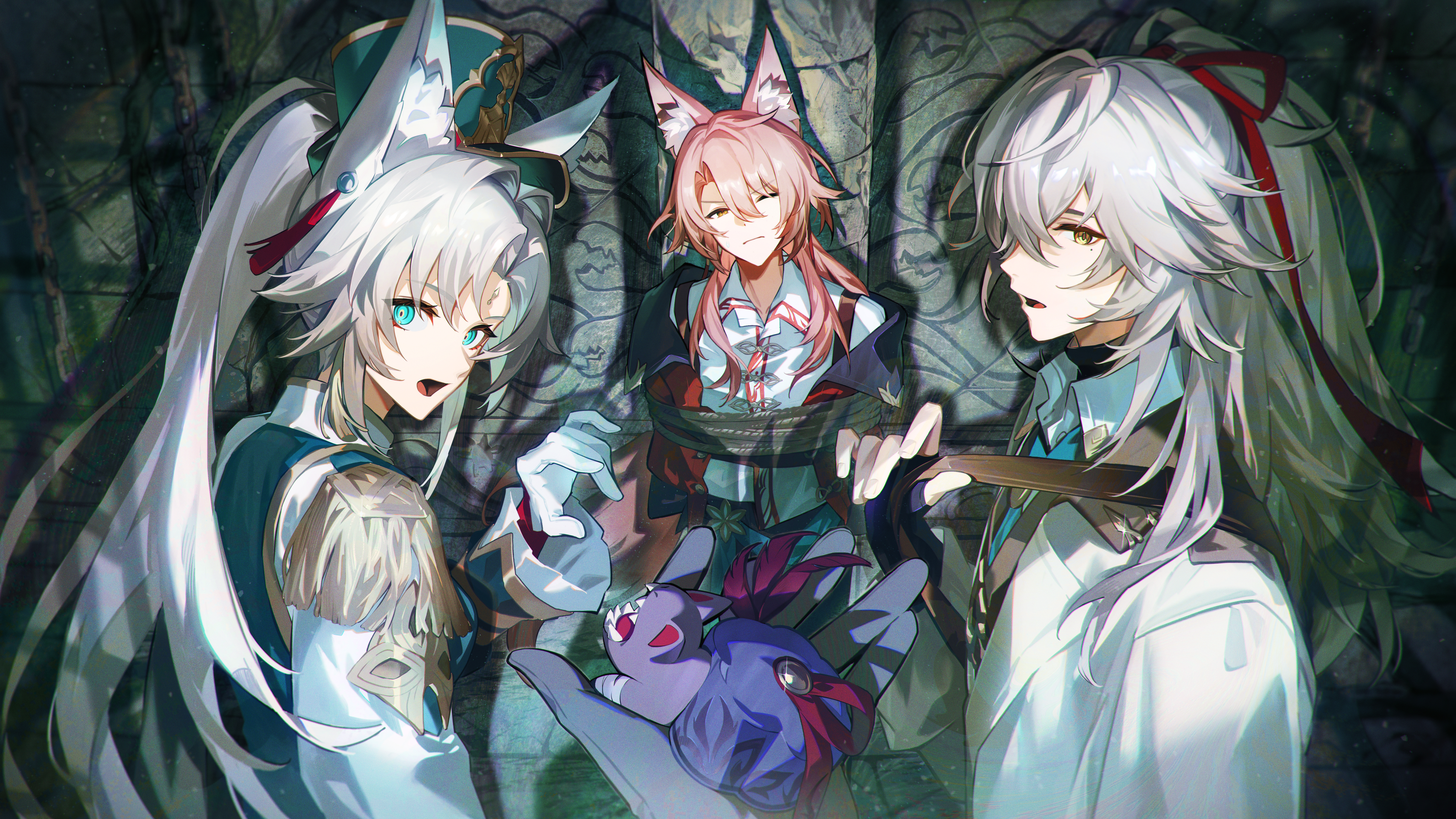 &{ID:12835194 CreatedAt:Tue Oct 21 21:16:11 -0500 2025 Score:2 Width:5760 Height:3240 MD5:4bac11777c3641289bcc93ce6c61142c Directory:4b/ac Image:4bac11777c3641289bcc93ce6c61142c.jpg Rating:general Source:https://www.pixiv.net/artworks/125878072 Change:1761099373 Owner:danbooru CreatorID:6498 ParentID:0 Sample:1 PreviewHeight:196 PreviewWidth:350 Tags:1girl 1other 2boys absurdres alternate_costume animal animal_ear_fluff animal_ear_piercing animal_ears aqua_eyes bag black_gloves bound chromatic_aberration closed_mouth collared_shirt commentary_request cake_cat_(honkai:_star_rail) epaulettes feixiao_(honkai:_star_rail) fingerless_gloves forehead_jewel fox_boy fox_ears fox_girl gloves green_hat hair_between_eyes hair_ribbon hand_up hat high_ponytail highres holding holding_animal holding_strap honkai:_star_rail honkai_(series) hoyofair jacket jiaoqiu_(honkai:_star_rail) jing_yuan long_hair long_sleeves looking_at_viewer mole mole_under_eye multiple_boys off_shoulder one_eye_closed open_clothes open_jacket open_mouth parted_bangs pink_hair ponytail pov pov_hands red_jacket red_ribbon ribbon shirt shoulder_bag sitting surprised tassel teru2307 tied_up_(nonsexual) white_gloves white_hair white_jacket white_shirt yellow_eyes Title: HasNotes:false HasComments:false FileURL:https://img2.gelbooru.com/images/4b/ac/4bac11777c3641289bcc93ce6c61142c.jpg PreviewURL:https://gelbooru.com/thumbnails/4b/ac/thumbnail_4bac11777c3641289bcc93ce6c61142c.jpg SampleURL:https://img2.gelbooru.com/samples/4b/ac/sample_4bac11777c3641289bcc93ce6c61142c.jpg SampleHeight:478 SampleWidth:850 Status:active PostLocked:0 HasChildren:false IsVideo:false DisplayDate:21.10.2025 21:16}