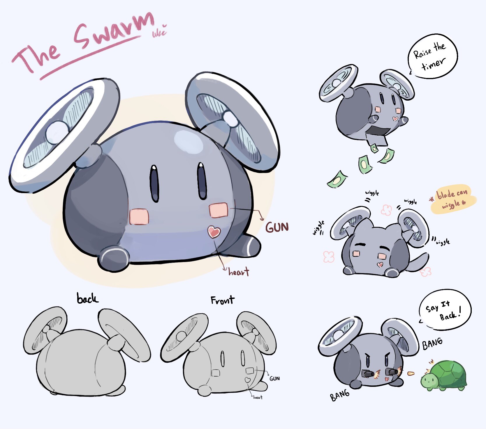 animal_ears banknote cat_tail chibi chibi_only commentary drone english_commentary english_text firing flying full_body highres money no_humans simple_background speech_bubble swarm_drone_(neuro-sama) tail turtle ukichan22905846 vedal987 vedal_ai virtual_youtuber white_background