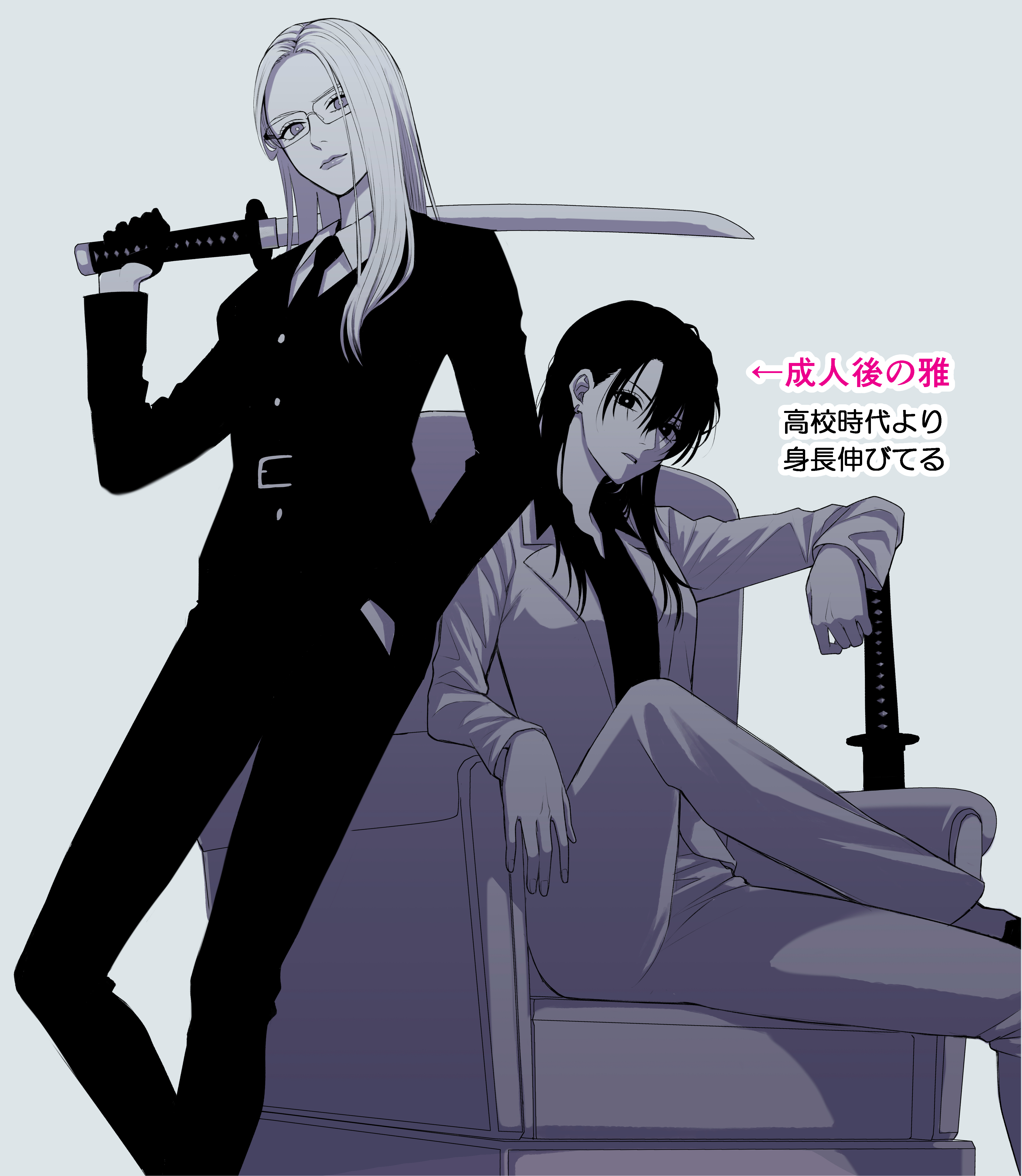 &{ID:12962349 CreatedAt:Fri Nov 14 22:15:39 -0600 2025 Score:0 Width:4072 Height:4685 MD5:ba17760b6f1980a4807ea13219ec1354 Directory:ba/17 Image:ba17760b6f1980a4807ea13219ec1354.jpg Rating:general Source:https://www.pixiv.net/artworks/111011276 Change:1763180141 Owner:danbooru CreatorID:6498 ParentID:0 Sample:1 PreviewHeight:350 PreviewWidth:304 Tags:absurdres arm_rest armchair belt breasts chair closed_mouth collared_shirt commentary_request feet_out_of_frame figure_four_sitting formal_clothes glasses greyscale hand_in_pocket hand_up highres holding holding_sword holding_weapon jacket lips long_hair long_sleeves looking_at_viewer medium_breasts monochrome mugennitaberu necktie on_chair open_clothes open_jacket original pants parted_lips planted planted_sword planted_weapon rectangular_eyewear rimless_eyewear sheath sheathed shirt simple_background sitting standing suit suit_jacket sword weapon wing_collar Title: HasNotes:false HasComments:false FileURL:https://img2.gelbooru.com/images/ba/17/ba17760b6f1980a4807ea13219ec1354.jpg PreviewURL:https://gelbooru.com/thumbnails/ba/17/thumbnail_ba17760b6f1980a4807ea13219ec1354.jpg SampleURL:https://img2.gelbooru.com/samples/ba/17/sample_ba17760b6f1980a4807ea13219ec1354.jpg SampleHeight:978 SampleWidth:850 Status:active PostLocked:0 HasChildren:false IsVideo:false DisplayDate:14.11.2025 22:15}
