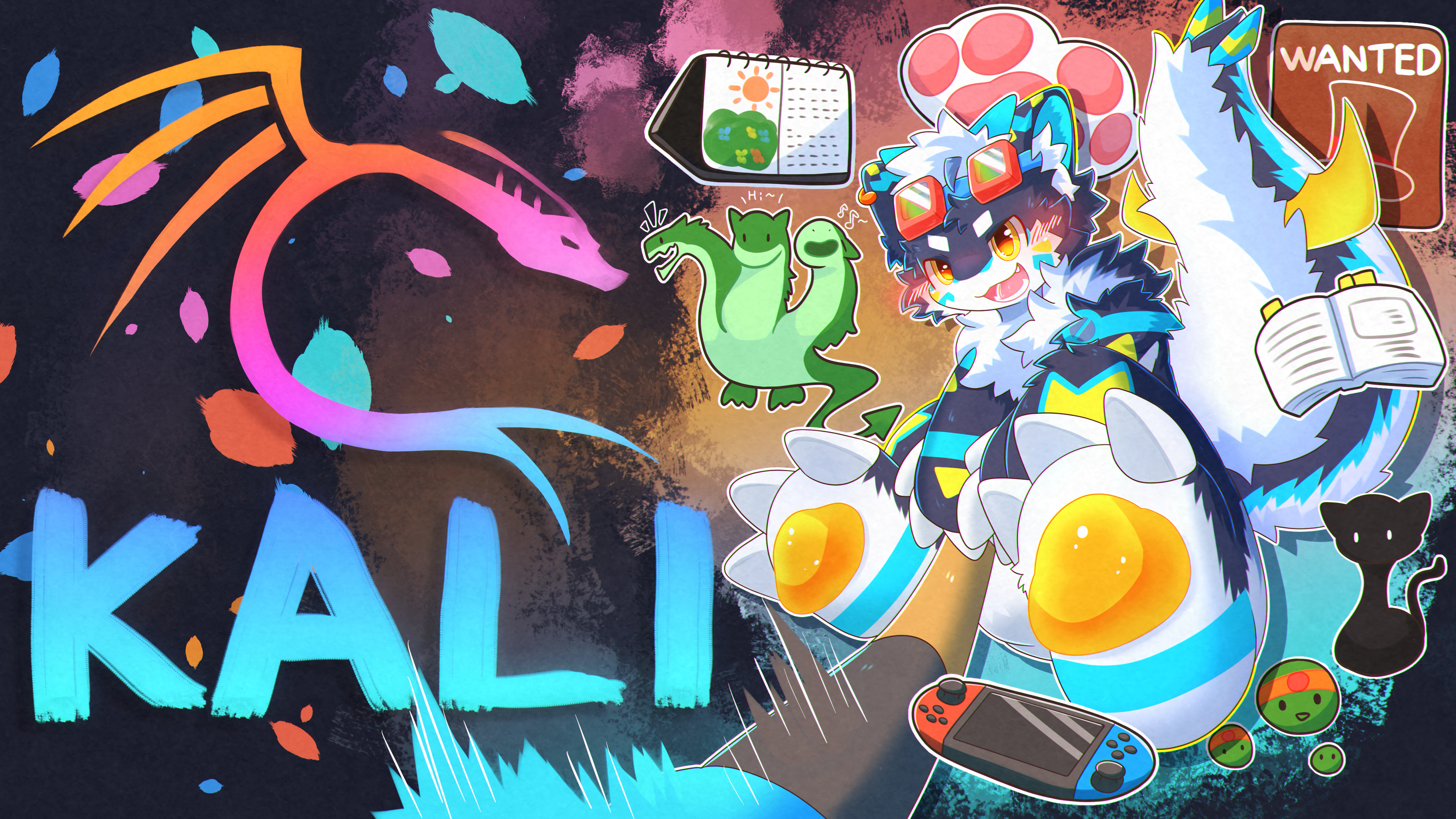 absurdres animal_hands calendar_(object) commentary dragon english_commentary english_text furry furry_male glasses highres kali_linux linux mofuchya nintendo_switch open_mouth original petals tail wanted_poster western_dragon