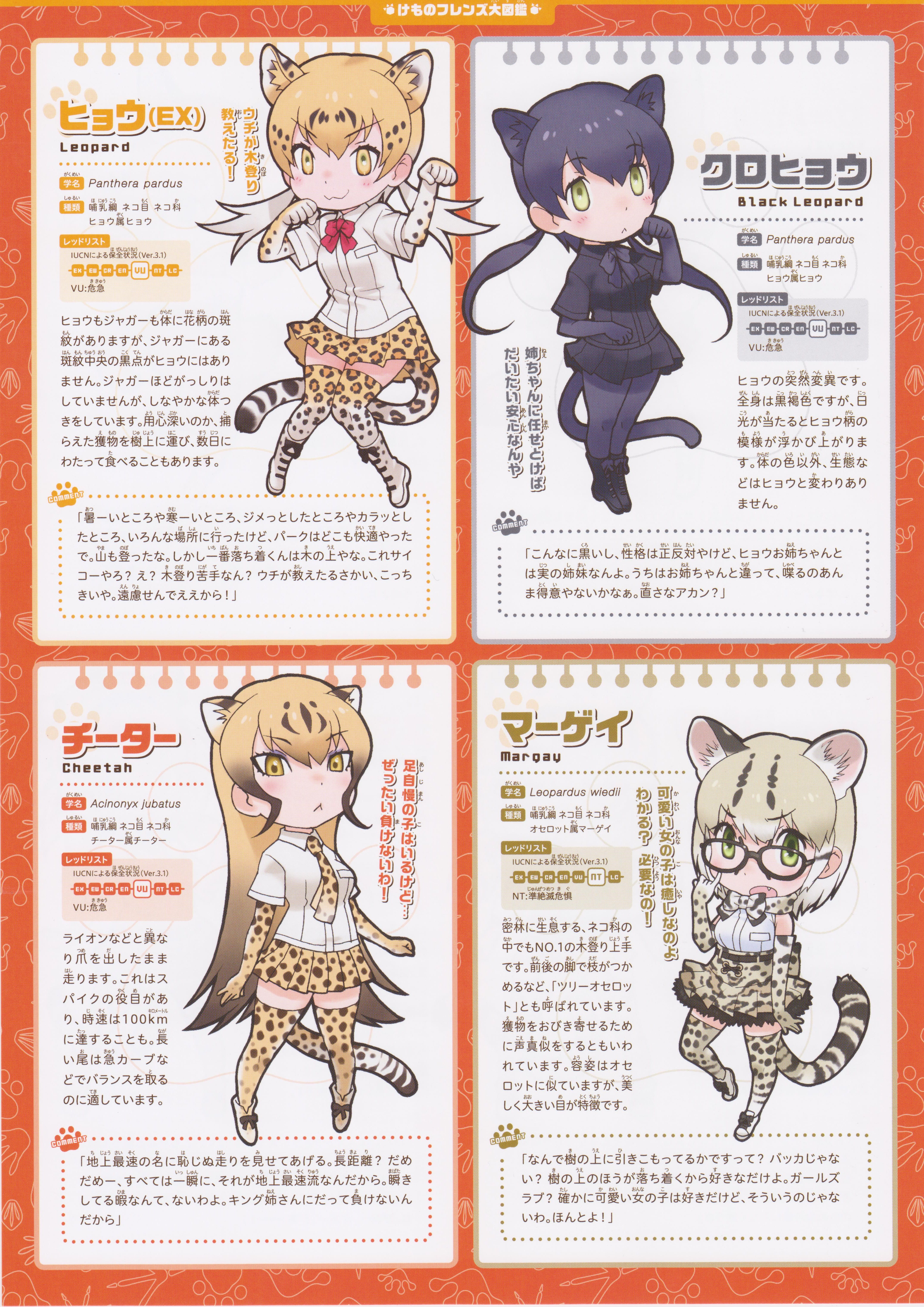 4girls absurdres black_leopard_(kemono_friends) cheetah_(kemono_friends) full_body highres kemono_friends kemono_friends_2 leopard_(kemono_friends) looking_at_viewer margay_(kemono_friends) multiple_girls official_art simple_background yoshizaki_mine