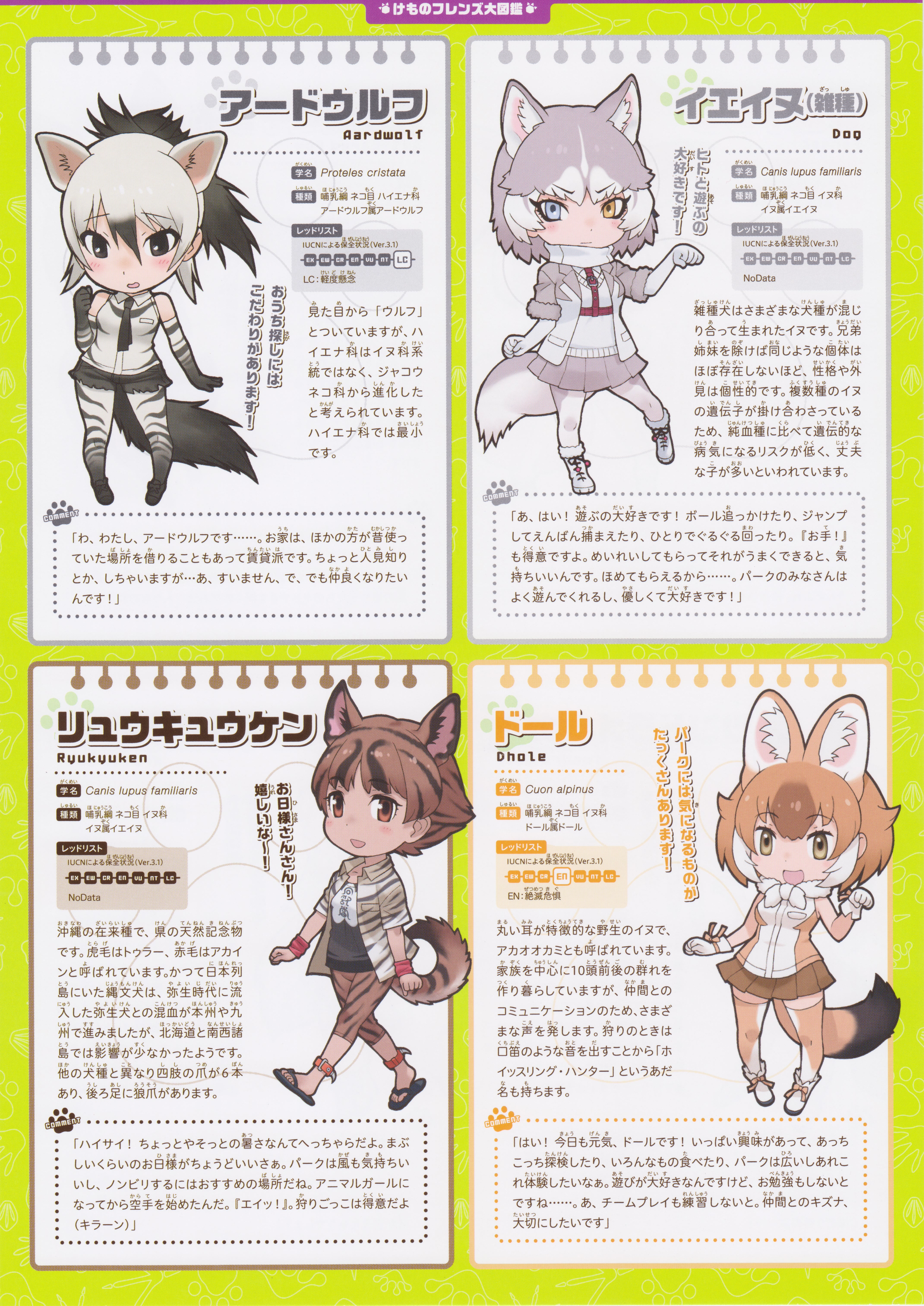 4girls aardwolf_(kemono_friends) absurdres dhole_(kemono_friends) dog_(mixed_breed)_(kemono_friends) full_body highres kemono_friends kemono_friends_2 looking_at_viewer multiple_girls official_art ryukyu_ken_(kemono_friends) simple_background yoshizaki_mine