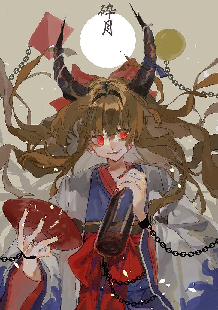 &{ID:13031504 CreatedAt:Fri Nov 28 07:00:28 -0600 2025 Score:1 Width:726 Height:1032 MD5:820a1917ceda86ce97d98f9d28a83652 Directory:82/0a Image:820a1917ceda86ce97d98f9d28a83652.jpg Rating:general Source:https://twitter.com/no_way114/status/1344234826275069952 Change:1764334828 Owner:danbooru CreatorID:6498 ParentID:0 Sample:0 PreviewHeight:350 PreviewWidth:246 Tags:1girl alternate_costume bottle bow brown_hair brown_horns chain commentary_request cuffs cup floating_hair hair_bow hair_intakes haori holding holding_cup horns ibuki_suika japanese_clothes kimono long_hair long_sleeves looking_at_viewer open_mouth orb purple_kimono pyramid_(geometry) red_bow red_eyes red_sash sakazuki sake_bottle sash shinjitsu_no_kuchi smile solo touhou upper_body very_long_hair white_haori wide_sleeves Title: HasNotes:false HasComments:false FileURL:https://img2.gelbooru.com/images/82/0a/820a1917ceda86ce97d98f9d28a83652.jpg PreviewURL:https://gelbooru.com/thumbnails/82/0a/thumbnail_820a1917ceda86ce97d98f9d28a83652.jpg SampleURL: SampleHeight:0 SampleWidth:0 Status:active PostLocked:0 HasChildren:false IsVideo:false DisplayDate:28.11.2025 07:00}