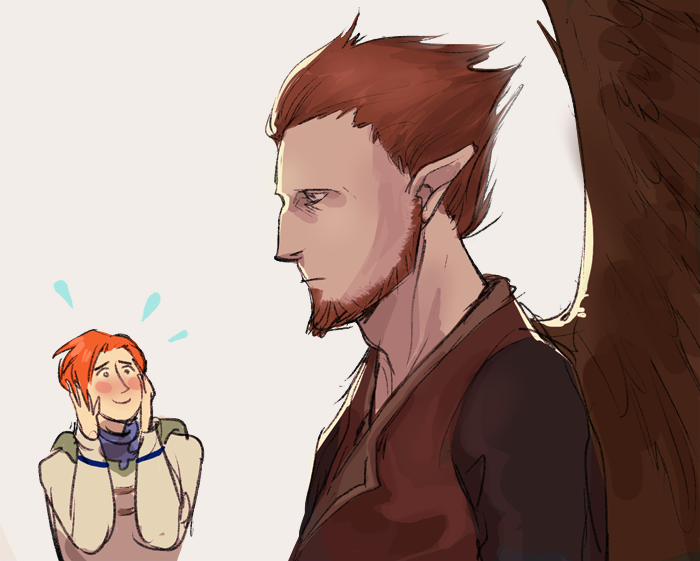 2boys beard brown_hair chinstrap_beard commentary_request facial_hair fire_emblem fire_emblem:_path_of_radiance male_focus multiple_boys nintendo orange_hair pointy_ears rhys_(fire_emblem) sahrnia short_hair ulki_(fire_emblem) wings