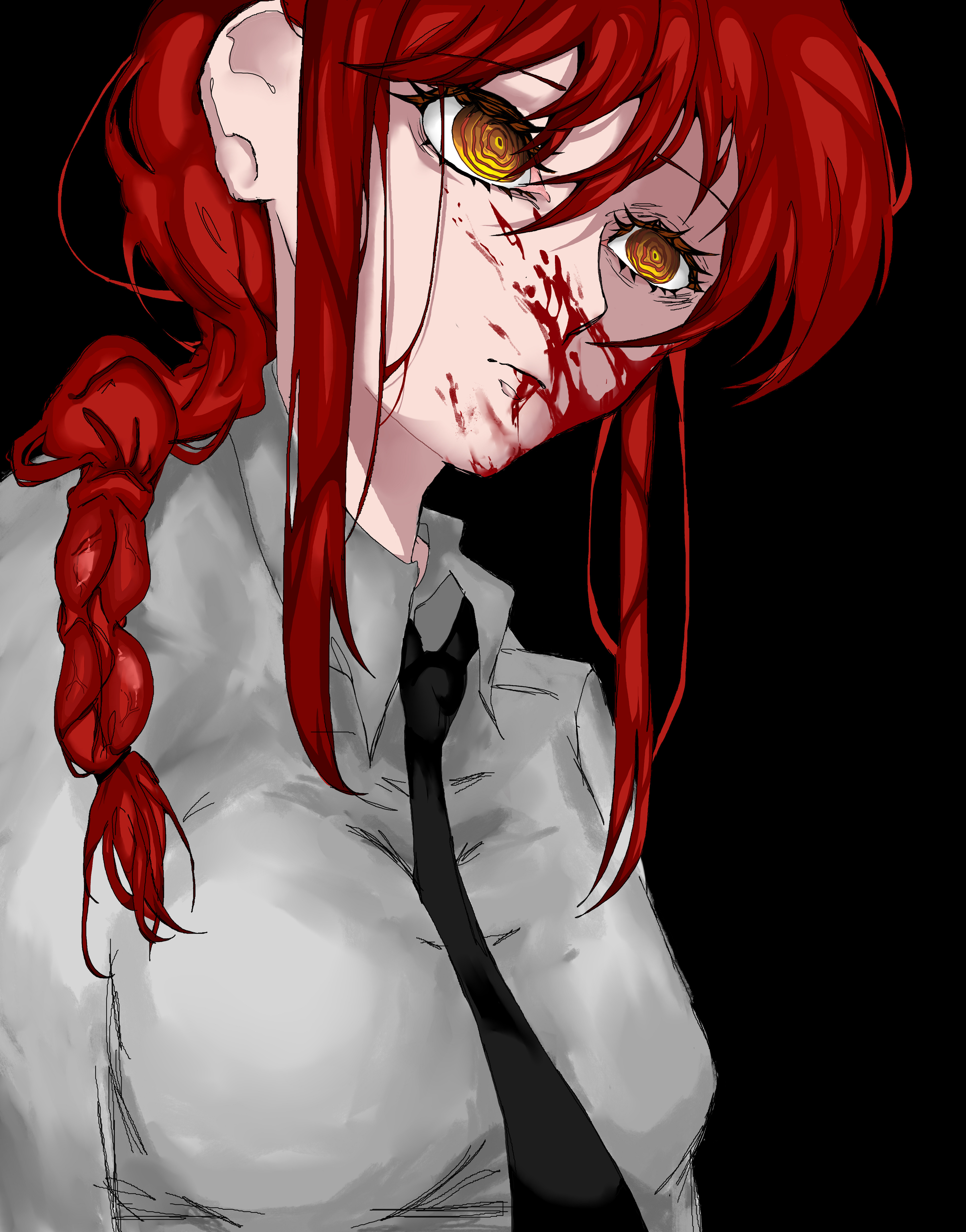 1girl absurdres bad_artstation_link bad_link blood blood_on_face chainsaw_man highres keitaleila makima_(chainsaw_man) necktie