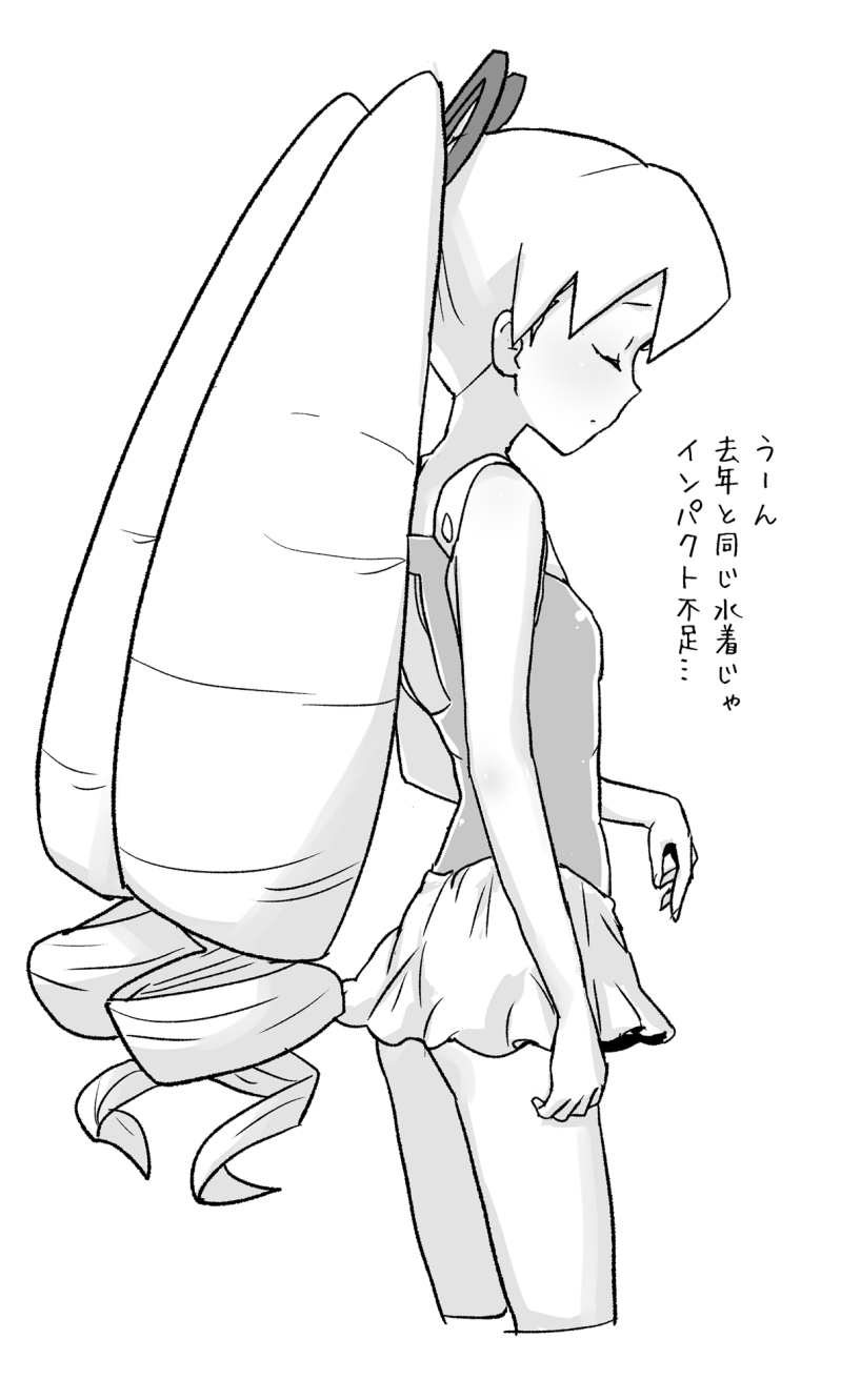 1girl back_cutout bow closed_eyes clothing_cutout drill_hair greyscale hair_bow heriyama highres long_hair luna_platz_(mega_man) mega_man_(series) mega_man_star_force_(series) monochrome one-piece_swimsuit simple_background swimsuit twin_drills very_long_hair white_background