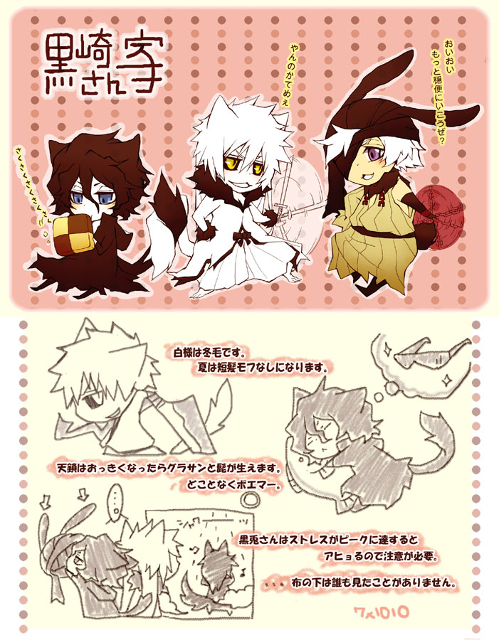 3boys 7x1010 animal_ears bleach bleach:_jigoku-hen chibi hollow_ichigo kokutou_(bleach) male_focus multiple_boys sunglasses tail tensa_zangetsu translation_request zangetsu_(bleach)