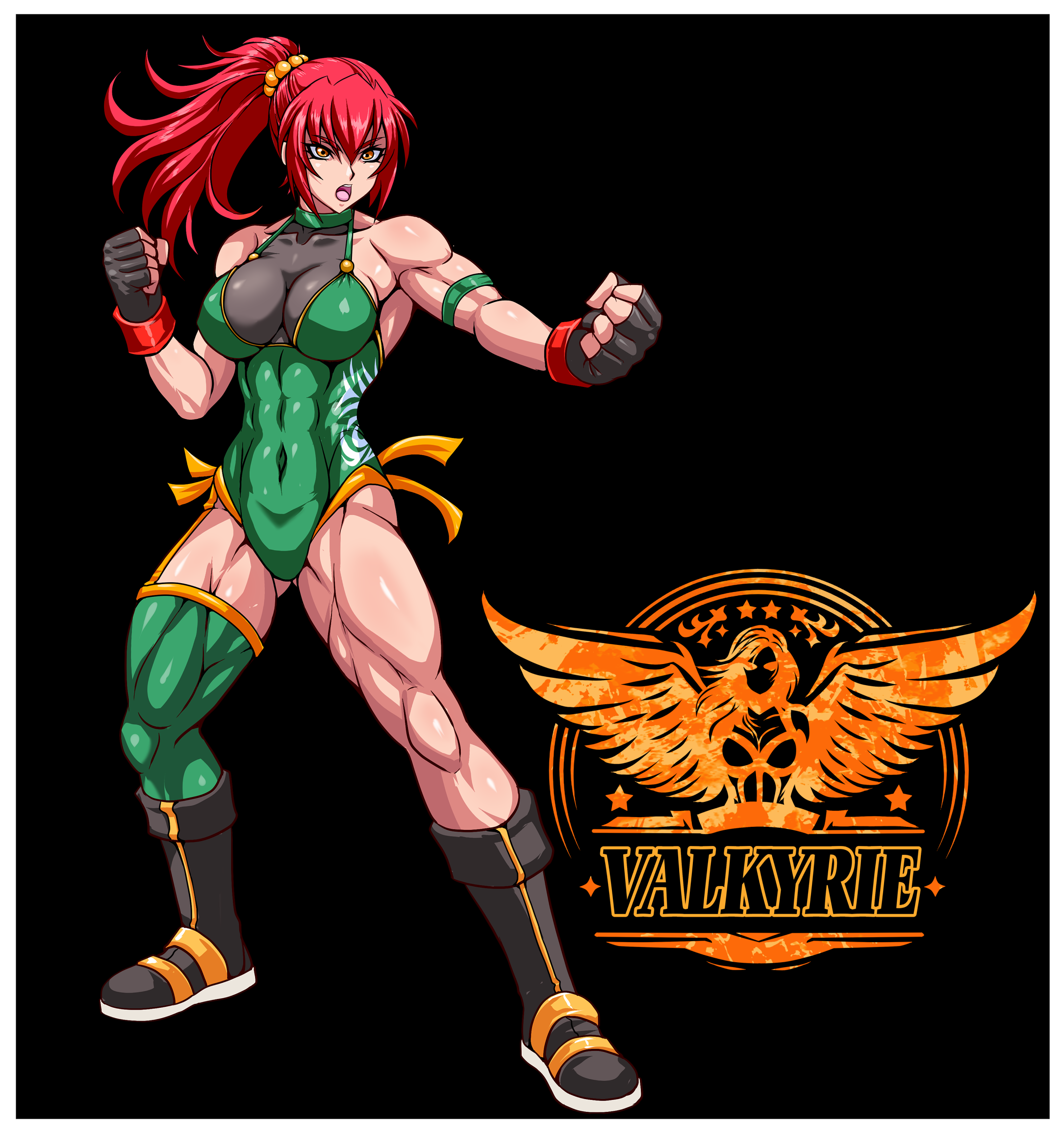 1girl fingerless_gloves gloves highres muscular muscular_female original ponytail red_hair solo tagme taroimo_(00120014) wrestler wrestling_outfit