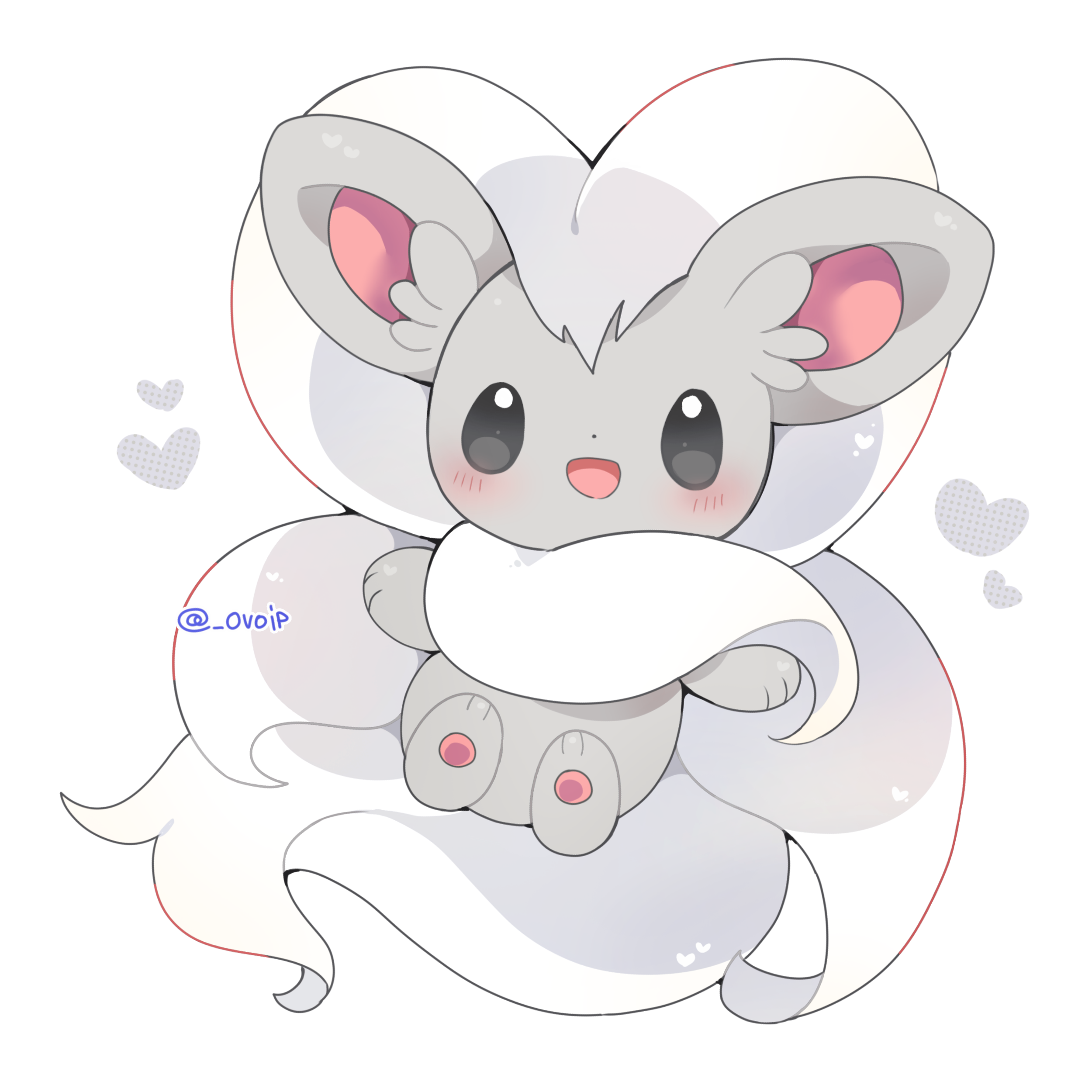 :d absurdres blush commentary_request full_body gen_5_pokemon happy heart highres looking_at_viewer minccino nintendo no_humans open_mouth pokemon pokemon_(creature) pokemon_focus shirasuame_shiromaru smile solo twitter_username white_background