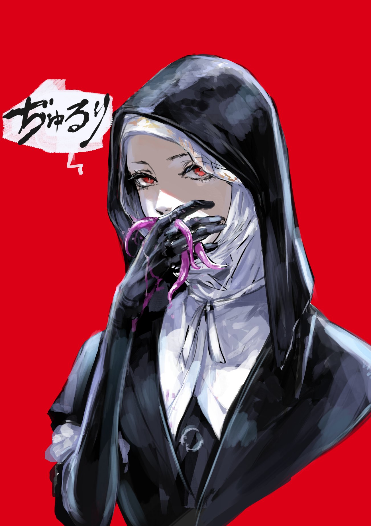 &{ID:13091848 CreatedAt:Tue Dec 09 11:16:17 -0600 2025 Score:6 Width:1302 Height:1842 MD5:10ed1a2eb198d7853d0d53f2ae297181 Directory:10/ed Image:10ed1a2eb198d7853d0d53f2ae297181.jpg Rating:general Source:https://twitter.com/f_osakana/status/1998414764217876859 Change:1765300577 Owner:danbooru CreatorID:6498 ParentID:0 Sample:1 PreviewHeight:350 PreviewWidth:247 Tags:1girl black_capelet black_gloves black_hood capelet coif covering_own_mouth cropped_torso elbow_gloves elden_ring elden_ring_nightreign gloves hand_over_own_mouth highres jewelry looking_at_viewer mace necklace nun osakana_(denpa_yun'yun) red_background red_eyes solo sound_effects tentacles undertaker_(elden_ring) weapon white_coif Title: HasNotes:false HasComments:false FileURL:https://img2.gelbooru.com/images/10/ed/10ed1a2eb198d7853d0d53f2ae297181.jpg PreviewURL:https://gelbooru.com/thumbnails/10/ed/thumbnail_10ed1a2eb198d7853d0d53f2ae297181.jpg SampleURL:https://img2.gelbooru.com/samples/10/ed/sample_10ed1a2eb198d7853d0d53f2ae297181.jpg SampleHeight:1203 SampleWidth:850 Status:active PostLocked:0 HasChildren:false IsVideo:false DisplayDate:09.12.2025 11:16}