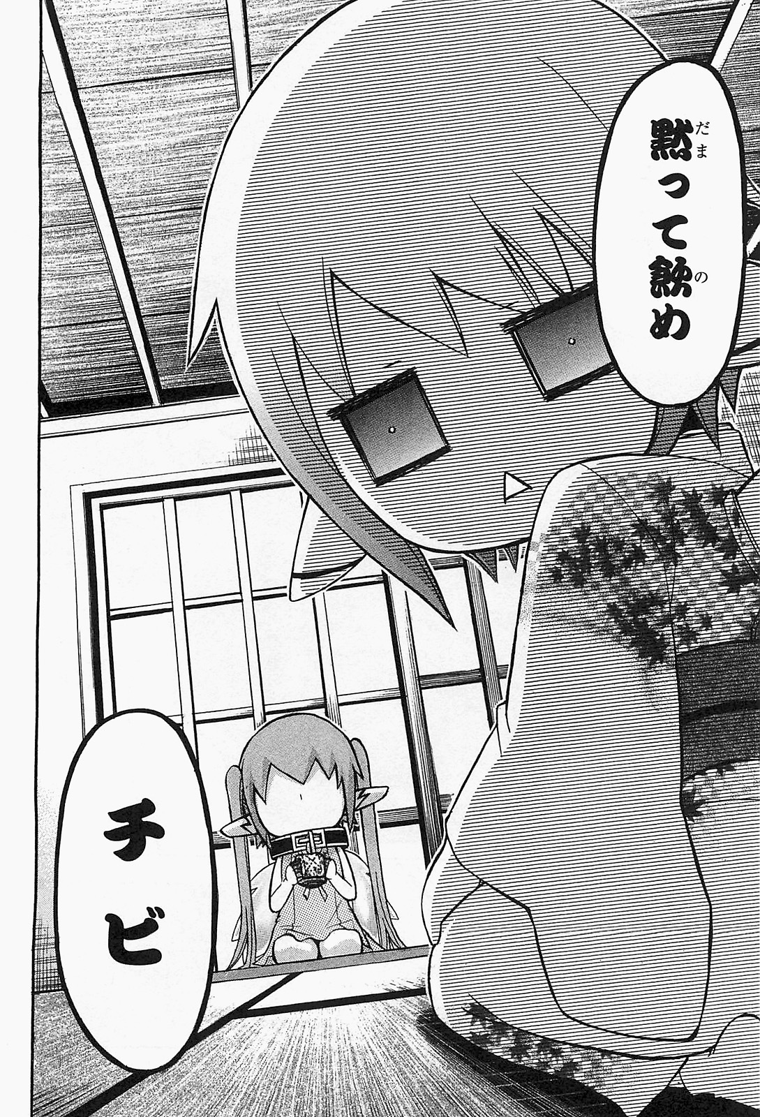 2girls ceiling chain chibi chibi_only collar cup dress faceless faceless_female from_behind full_body greyscale hair_between_eyes highres holding holding_cup japanese_clothes kimono long_hair long_sleeves looking_at_viewer metal_collar minazuki_suu monochrome multiple_girls nymph_(sora_no_otoshimono) obi oregano_(sora_no_otoshimono) robot_ears sash seiza short_dress shouji sidelocks sitting sleeveless sleeveless_dress sliding_doors socks sora_no_otoshimono speech_bubble tatami third-party_source translation_request triangle_mouth twintails very_long_hair wide_sleeves wings