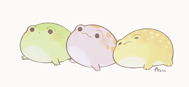 :3 animal_focus ayu_(mog) closed_eyes closed_mouth commentary commentary_request dot_mouth english_commentary frog mixed-language_commentary no_humans original romaji_commentary signature simple_background solid_circle_eyes white_background