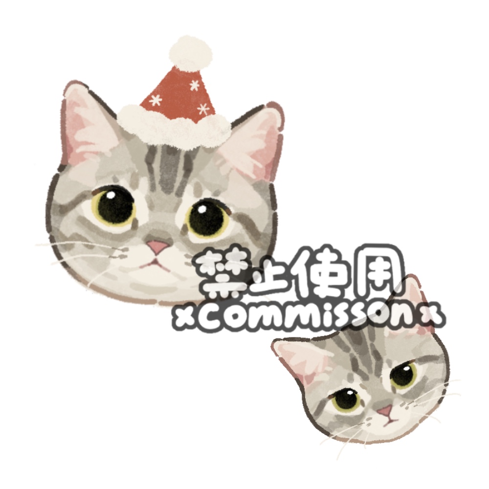 animal animal_focus cat christmas clothed_animal commission cropped_head green_eyes grey_cat hat looking_at_viewer no_humans original red_hat santa_hat simple_background tabby_cat watermark whiskers white_background xiao_bo_kuai_kuai yellow_eyes