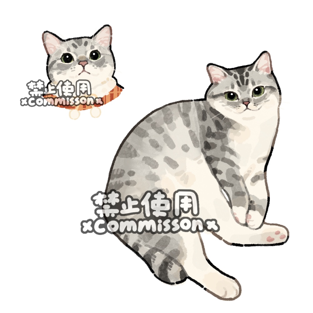 american_shorthair animal animal_focus capelet cat clothed_animal commission cropped_head full_body fur-trimmed_capelet fur_trim green_eyes grey_cat looking_at_viewer lying multiple_views no_humans on_side original pom_pom_(clothes) red_capelet simple_background smile solo_focus tabby_cat watermark white_background xiao_bo_kuai_kuai
