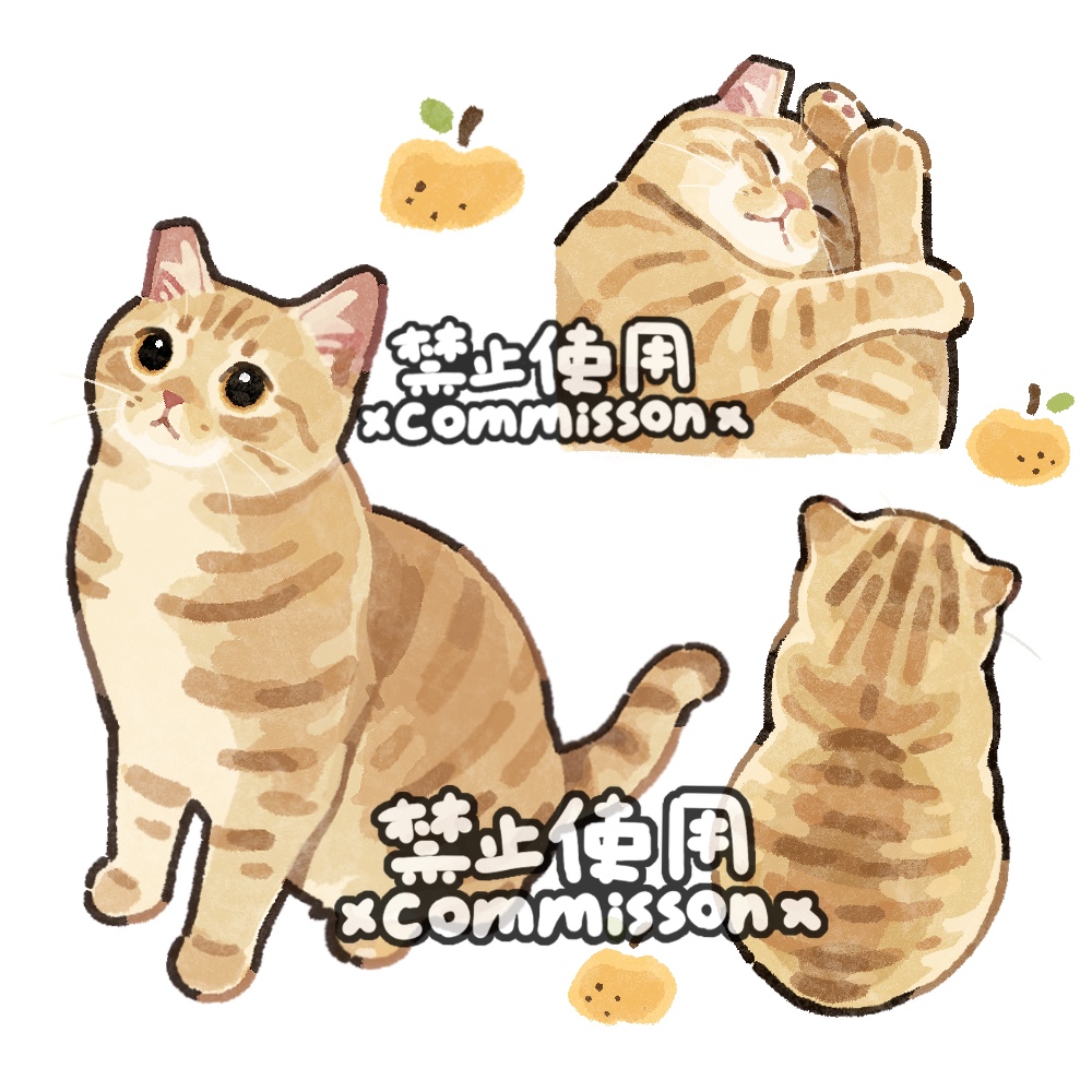 animal animal_focus apple cat commission curled_up food from_behind fruit full_body hugging_own_legs looking_at_viewer multiple_views no_humans original simple_background sitting tabby_cat watermark white_background xiao_bo_kuai_kuai yellow_cat yellow_eyes