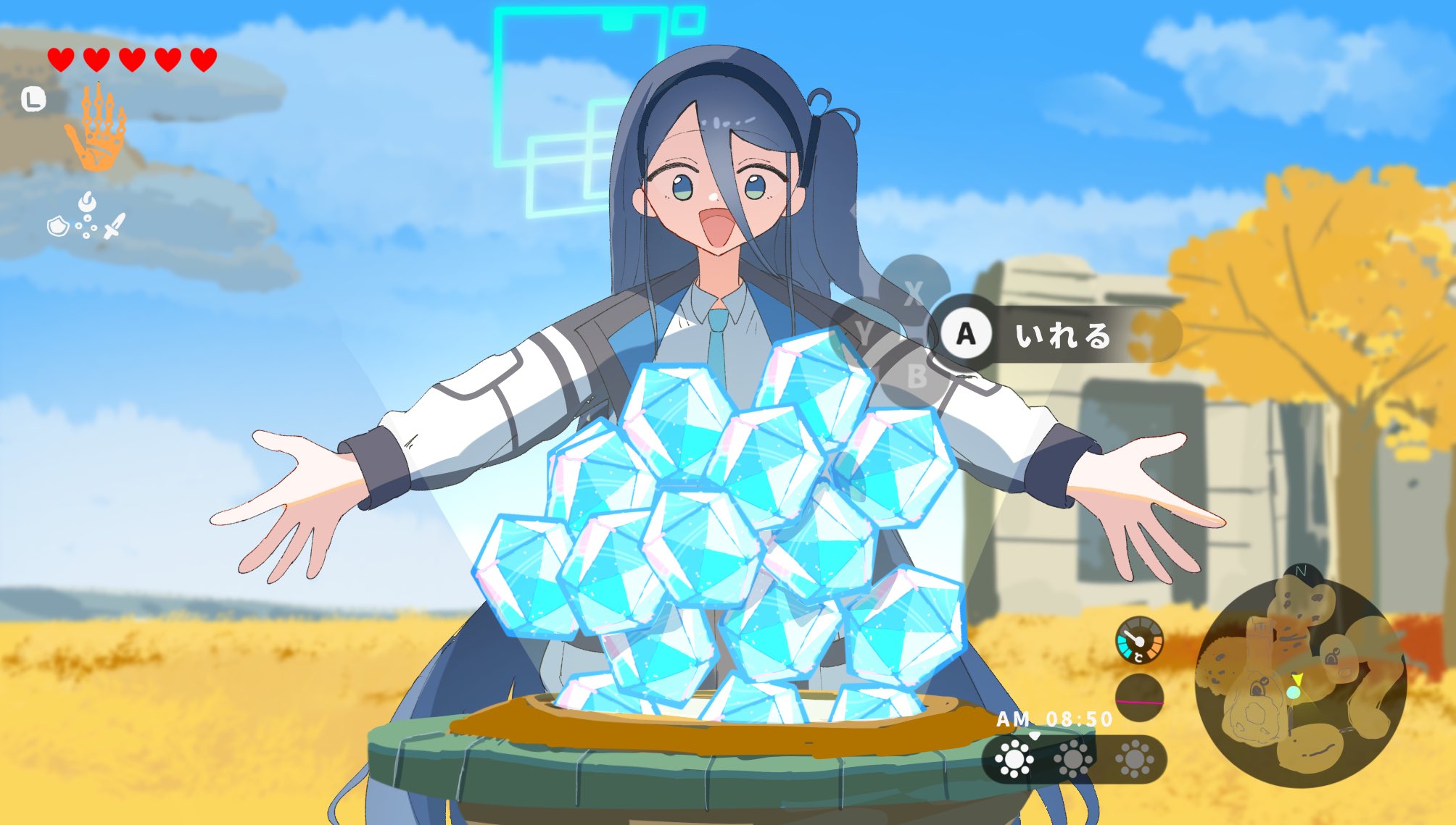 1girl aris_(blue_archive) black_hair blue_archive blue_eyes blue_necktie hair_between_eyes hairband halo highres jacket long_hair long_sleeves miaki_(mi_autumn39) necktie nintendo one_side_up open_mouth pyroxene_(blue_archive) shirt smile solo tagme the_legend_of_zelda the_legend_of_zelda:_tears_of_the_kingdom translation_request very_long_hair white_shirt