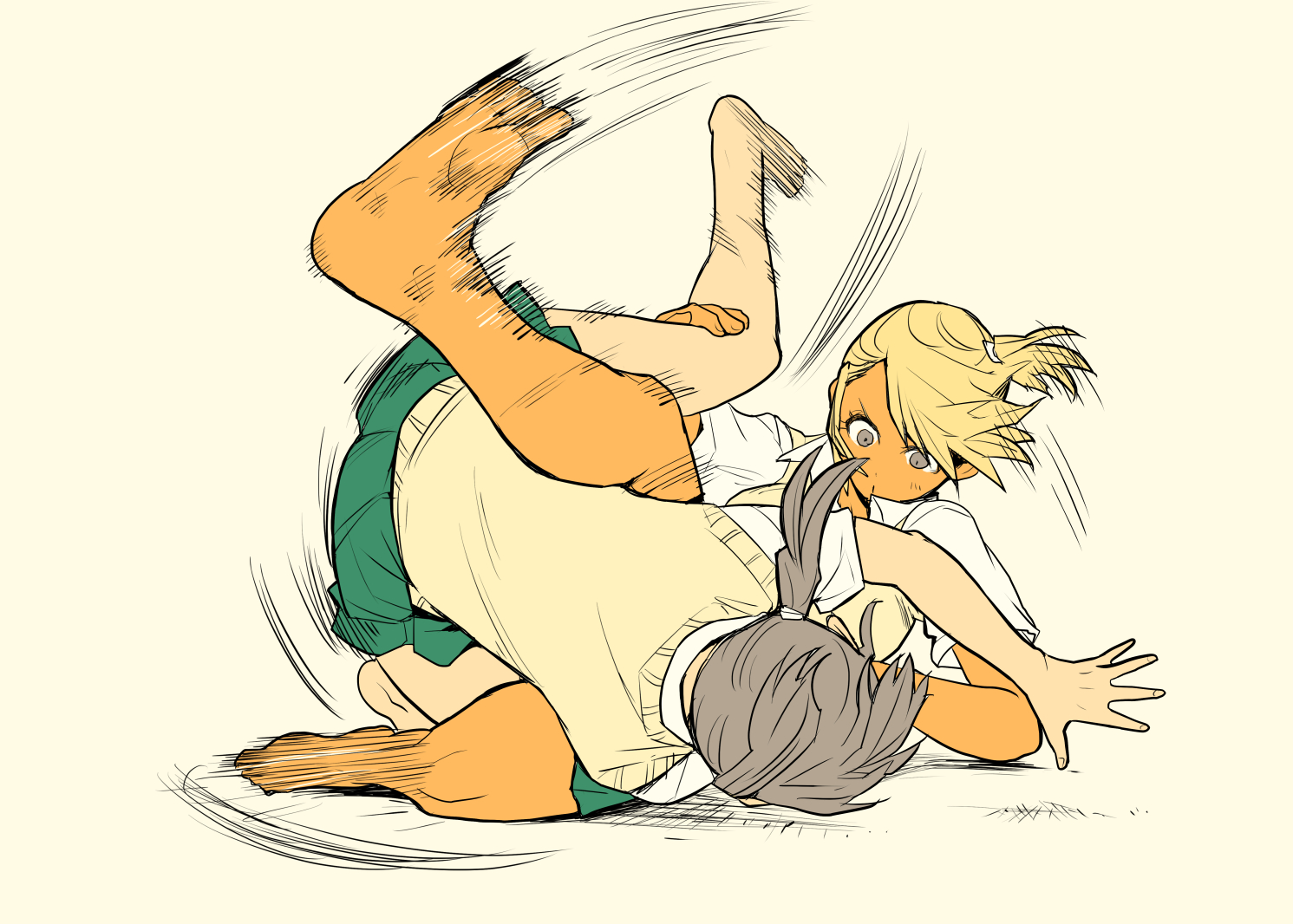 2girls blonde_hair fujita_kakuji jiu-jitsu multiple_girls skirt tagme wrestling