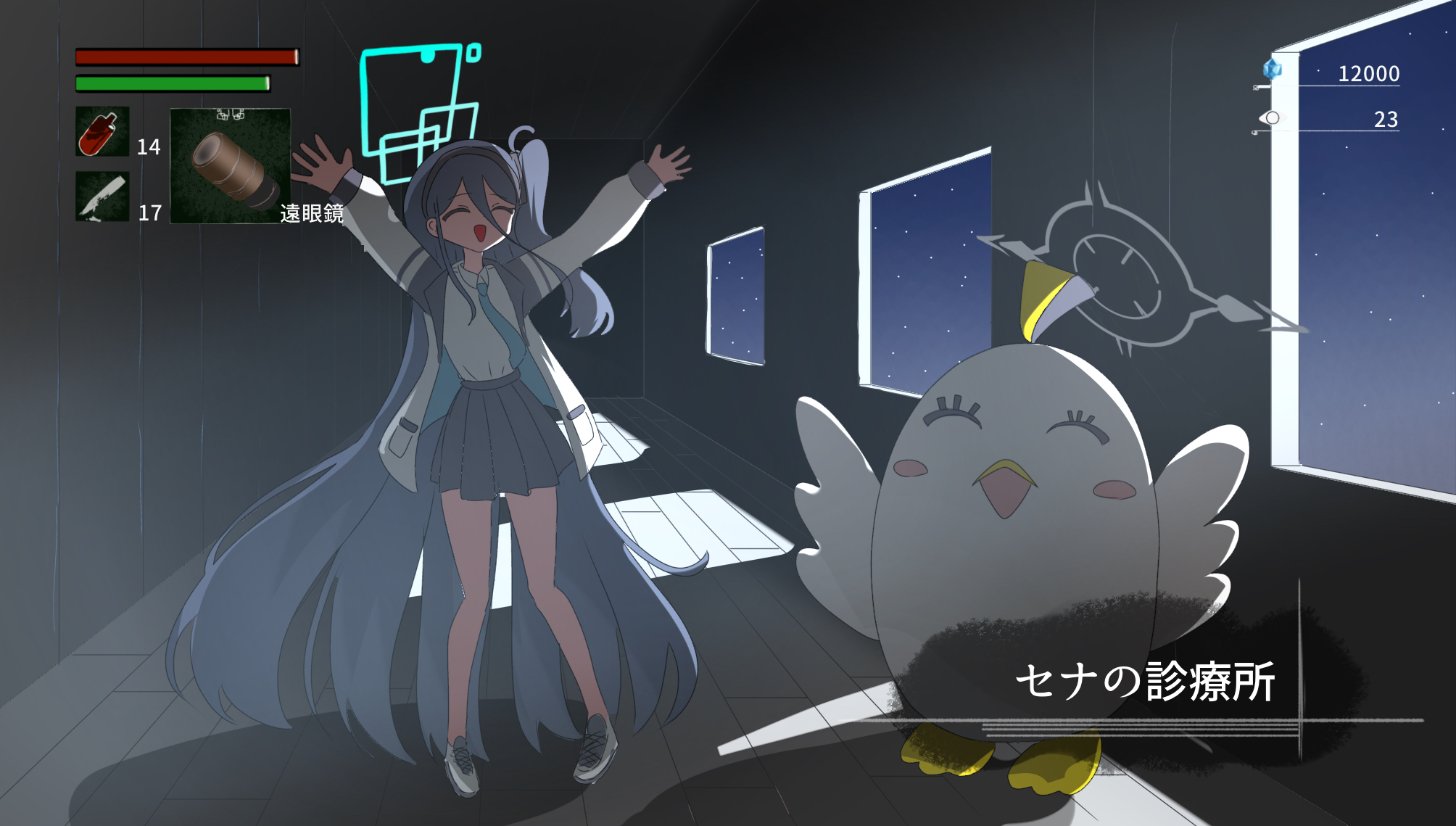 1girl absurdly_long_hair aris_(blue_archive) bloodborne blue_archive blue_necktie closed_eyes cosplay hair_between_eyes halo highres jacket long_hair long_sleeves miaki_(mi_autumn39) necktie one_side_up open_mouth parody peroro_(blue_archive) peroro_(blue_archive)_(cosplay) pyroxene_(blue_archive) shirt skirt smile tagme translation_request very_long_hair white_shirt