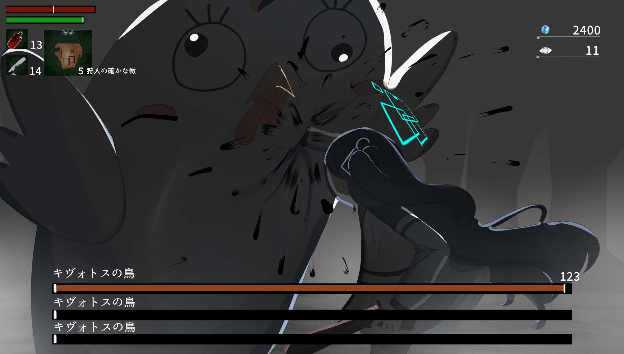 1girl absurdly_long_hair aqua_halo aris_(blue_archive) black_hair bloodborne blue_archive halo highres holding long_hair long_sleeves miaki_(mi_autumn39) parody peroro_(blue_archive) pyroxene_(blue_archive) rectangular_halo tagme translation_request very_long_hair