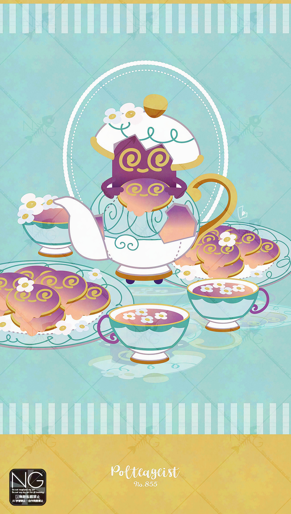 @_@ character-themed_food cookie crack cup flower food gen_8_pokemon highres holding meme_(sleepsheep) nintendo no_humans pokemon pokemon_(creature) pokemon_focus polteageist tea teacup teapot yellow_eyes