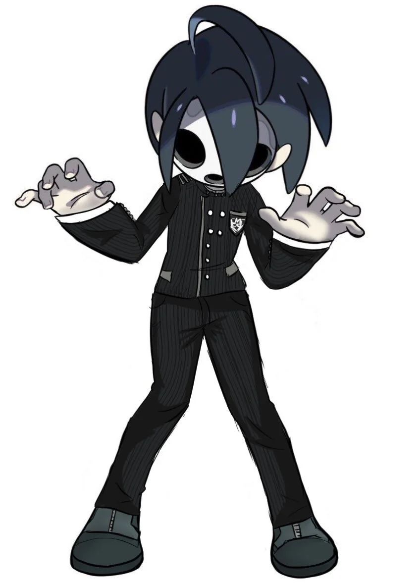 1boy allister_(pokemon) black_pants black_shirt child cosplay covered_face danganronpa_(series) danganronpa_v3:_killing_harmony fyodoor hair_between_eyes male_focus mask nintendo pants pokemon pokemon_swsh saihara_shuichi saihara_shuichi_(cosplay) school_uniform shirt short_hair third-party_edit white_mask